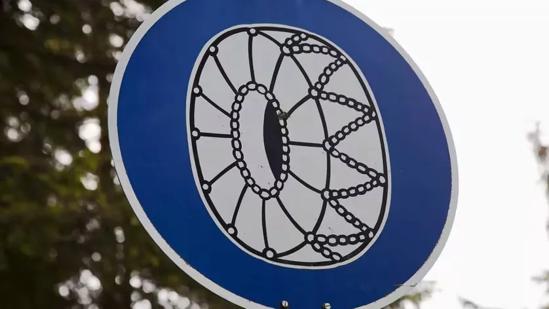 Verplicht bij een rond, blauw bord (vooral berggebieden)