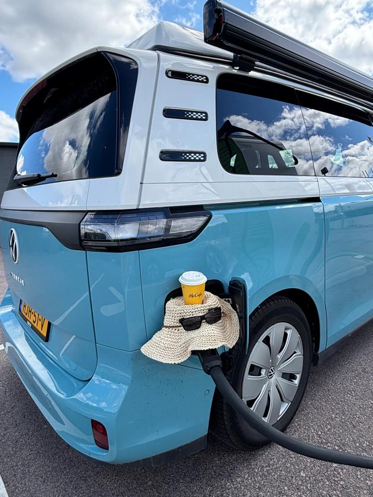 Cars and coffee is sowieso een goede combinatie en van deze plaat krijgen we zomerkriebels. Nog even wat stroom en cappuccino slurpen en dan door naar de zon. Toffe elektrische camper ook! - Ingezonden door: P. Brouwers