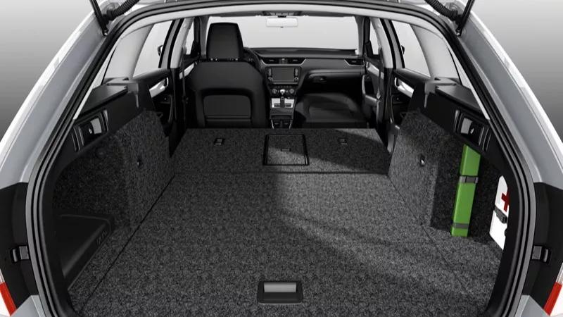 Van binnen is de Skoda Octavia netjes, maar niet bijzonder. Het dashboard is nogal somber zwart. Staat tegenover dat de meters goed afleesbaar zijn, dat alles duidelijk gegroepeerd is en op logische plekken zit en dat alles degelijk aanvoelt. De afwerking is bovendien van hoge kwaliteit. Je waant je in een auto uit een duurdere klasse. De stoelen geven goede zijdelingse steun en er is voldoende bergruimte voor kleine spulletjes. Zo zit er naast de gebruikelijke bergruimtes links van het stuur nog een handig bakje-met-klep, zit er achter de asbak nog een extra laatje met een schuifklep en zijn de bakken in de deuren fors van afmetingen. Slim is het houdertje waarin een smartphone past. Althans; een iPhone past erin, een Samsung is te breed. Verder is er achterin enorm veel beenruimte . De bagageruimte is voor een auto in deze klasse echt fors. Met de achterbank op z’n plek is dit 610 liter – net zoveel als de tien mille duurdere VW Passat. Met de bank plat heb je maximaal 1.740 liter ruimte. Verder vind je er een dubbele bodem, een mat die aan één kant van rubber is zodat natte spullen de bekleding niet verruïneren en zijn er kleine vastzet-elementen zodat bagage niet door de bak vliegt. Kritiekpunten zijn er ook. Om te beginnen is het zicht rondom matig. Vooral de grote raamstijlen zitten behoorlijk in de weg. Verder is de kachelbediening erg laaggeplaatst waardoor je je ogen van de weg moet halen om 'm te bedienen. En ook het navigatiescherm had wat hoger mogen zitten omdat je er heel veel functies mee bedient. Wat wel mooi is dat hij reageert op de warmte van je hand. Je hoeft het scherm niet helemaal aan te raken en hij reageert al.De Skoda Octavia Combi en het milieu