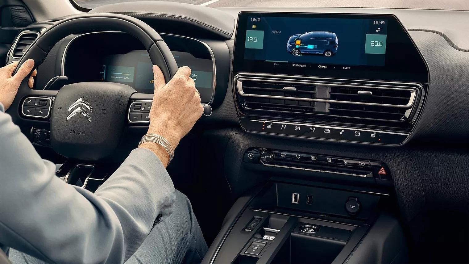 Ergonomie van de C5 Aircross PHEV is in orde. De meeste bedieningen – op die van de cruise control na – zitten op de juiste plekken en laten zich eenvoudig bedienen. Ook het infotainmentsysteem werkt logisch al is de bediening van de kachel in het display opgenomen en dat werkt omslachtig. Gelukkig kun je de radio nog gewoon harder en zachter zetten met een draaiknop of met toetsen op je stuurwiel. En over geluid gesproken, het is aan boord erg stil dankzij een extra geluiddempende laag op de voorste zijruiten.