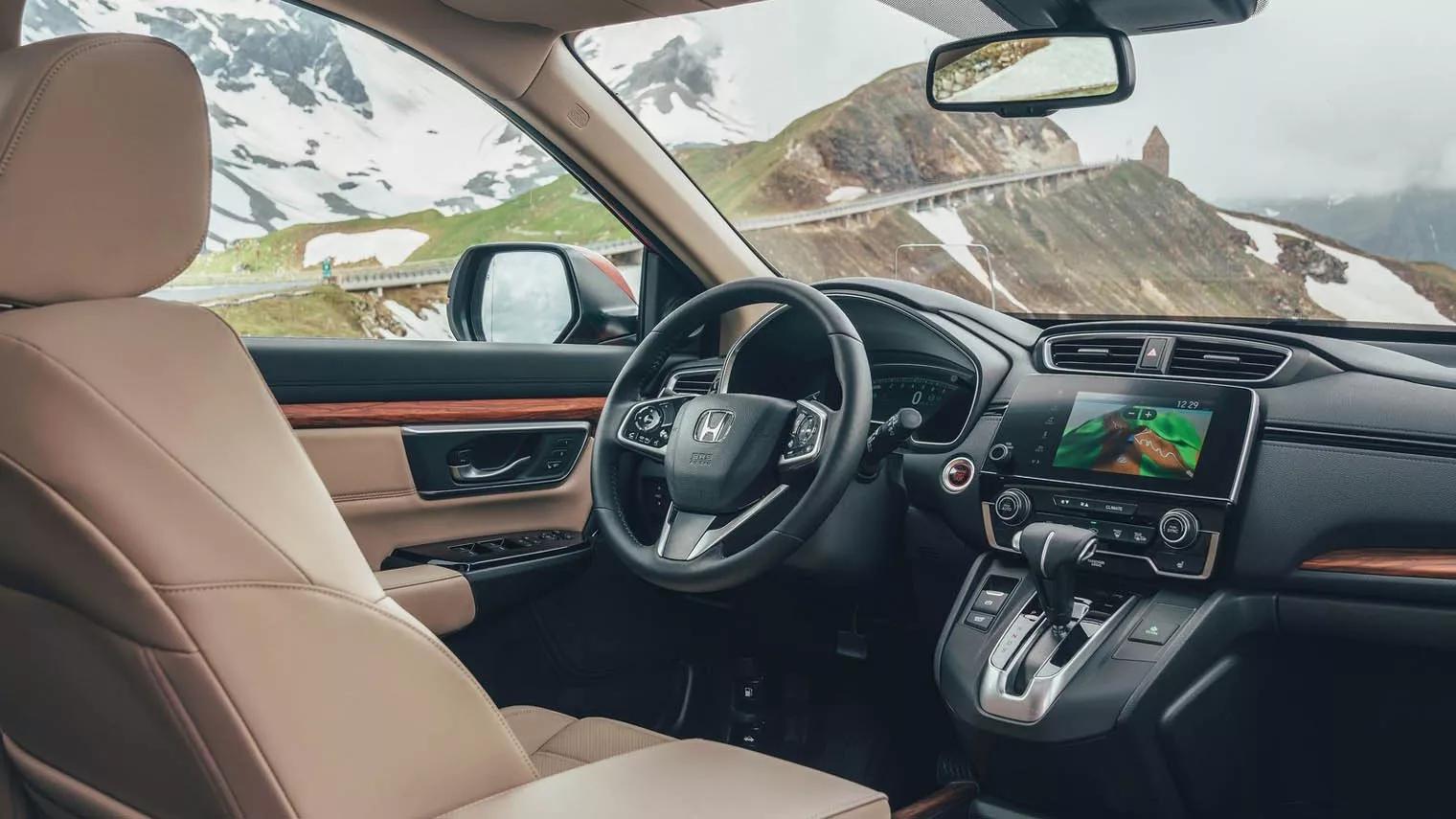 In vergelijking met andere Japanse automerken als Toyota en Mazda is Honda nog behoorlijk authentiek. Daarmee bedoelen we dat je in de CR-V een wat ongewoon interieur aantreft, met meetinstrumenten op verschillende niveau’s. Verder is het binnenste opgetuigd met diverse soorten sierstrips, waarvan we ons kunnen voorstellen dat niet iedereen ze even fraai vindt. Dat geldt ook voor de navigatiekaart, die wat grof is vormgegeven. Het infotainmentsysteem zit plezierig hoog op het dashboard en is goed afleesbaar; het aanraakscherm reageert daarentegen traag op je commando’s. De Honda biedt achterin een ‘bioscoopzit’, waardoor de achterpassagiers hoger zitten dan de mensen voorin. De instap wordt vergemakkelijkt doordat de achterportieren haaks op de koets openen. Eenmaal op de achterbank heb je een sloot aan beenruimte tot je beschikking. Omdat er geen middentunnel van betekenis in de Honda aanwezig is, kun je achterin gemakkelijk met drie volwassenen naast elkaar zitten. De hoofdruimte is toereikend, zelfs met het optionele panoramadak waarvan onze testauto was voorzien. De kofferbak meet minimaal 561- en maximaal 1.756 liter: daar komen concurrenten als de Mazda CX-5 en Seat Tarraco niet bij in de buurt. De rugleuning van de achterbank kun je vanuit de bagageruimte neerklappen: op die manier ontstaat een vlakke-, maar geen dubbele laadvloer. Onder de bagagebodem gaat in de reguliere benzineversies namelijk het – standaard - reservewiel schuil.