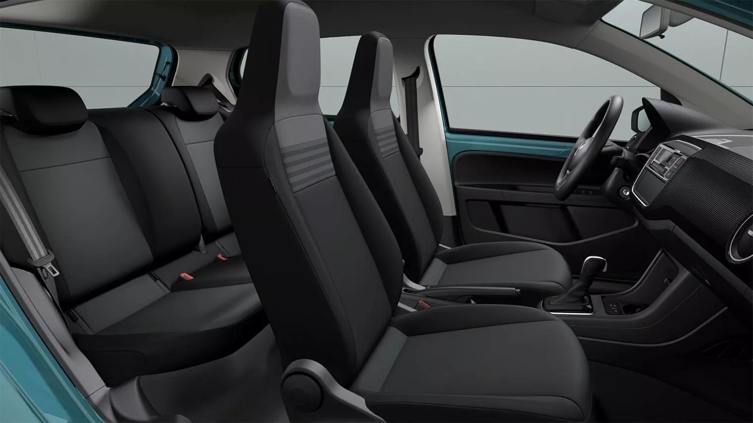 De e-Up! heeft standaard vijf deuren. Daarmee is het natuurlijk nog geen limousine. De achterportieren zijn wel handig, als er bijvoorbeeld op de achterbank kinderzitjes zijn bevestigd. Dit is bij uitstek een tweede auto in het gezin en daarmee ook ‘mama’s taxi’. De bagageruimte meet 251 liter en dat is voor een zo compacte auto best een goede score. Of het genoeg is voor de wekelijkse boodschappen… ach, anders leg je de achterbank even plat. De losse laadkabel moet ook wel in de bagageruimte worden meegenomen.
