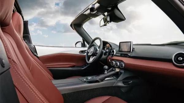 De MX-5 is een heerlijke auto voor wie van puur autorijden houdt. De zit is heel laag en ook met het dak open is het interieur heel compact. Met twee volwassenen zit de MX-5 ook echt vól en niet alleen omdat er maar twee zitplaatsen zijn. Door de zitpositie lijkt de neus een stuk langer, al heb je geen idee waar die ophoudt.
