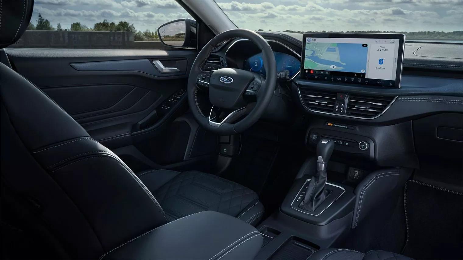 Aan boord van de Ford Focus Active Wagon is het goed toeven. De gebruikte materialen zijn prima, alle bedieningen zitten waar je ze verwacht en de stoelen zitten erg goed. Er is zowel voor- als achterin voldoende hoofd- en beenruimte. Missers hebben vooral te maken met het zicht. Zo zijn de raamstijlen erg breed. Ze ontnemen je schuin naar voren en naar achteren flink wat zicht. Helaas zijn de buitenspiegels aan de kleine kant dus dat helpt ook al niet. De testauto heeft parkeersensoren en een achteruitrijcamera. De knoppen direct onder het infotainmentscherm zitten zodanig dat je ze soms per ongeluk aanraakt (en dus bedient) als je op het infotainmentscherm bezig bent. Onze testauto heeft gen schakelflippers aan de stuurkolom. Als je die wilt zul je voor de ST Line moeten kiezen in plaats van voor de Vignale.