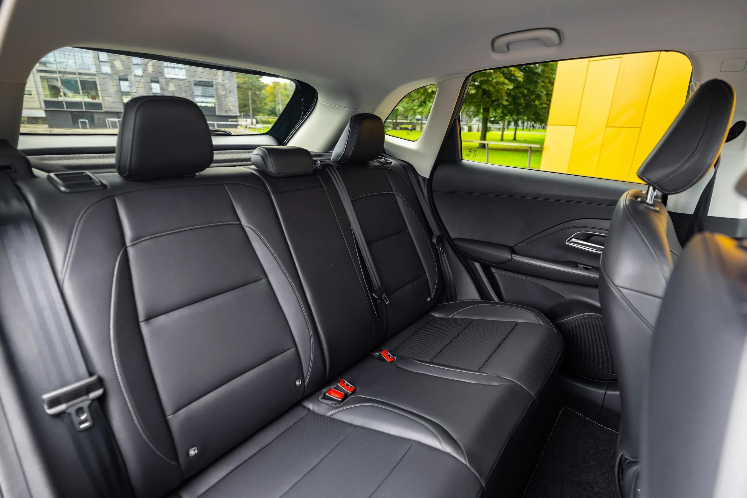 Achterin valt de flinke been- en hoofdruimte op, plus het feit dat je op een achterbank zit die daadwerkelijk je benen ondersteunt. De middentunnel pakt bescheiden uit, dus er passen eventueel drie mensen achterin. Die beschikken dan over eigen ventilatieroosters en een stroompunt.