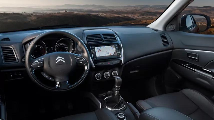 In deze SUV zit je lekker hoog met een goed uitzicht op de weg. De rijeigenschappen zijn, voor het type auto, helemaal niet slecht. Je voelt de C4 Aircross wel wat overhangen in bochten, maar het veercomfort is verder wel goed en het stuurgedrag is in orde. Citroën mag zijn C4 Aircross dan door Mitsubishi laten bouwen, ze hebben er wel hun eigen dieselmotor ingestopt. Een fijne HDi met een vermogen van 115 pk oftewel 84 kW. Het maximumkoppel bedraagt 270 Nm en wordt al bij 1750 toeren bereikt. Dat betekent gewoon dat deze diesel lekker veel trekkracht heeft. Erg lawaaiig is hij niet, eigenlijk is het windgeruis in de Aircross hinderlijker dan het motorgeluid. In de vierwielaangedreven versie kun je met een draaiknop kiezen uit drie standen. In de 2WD stand worden alleen de voorwielen aagedreven en rij je het zuinigst. In de 4WD stand doen ook de achterwielen mee, maar de mate waarin wordt automatisch bepaald, afhankelijk van de omstandigheden. In de 'Lock' stand wordt het vermogen 50/50 over voor- en achterwielen verdeeld. Ideaal in het terrein of bij een dik pak sneeuw.De Citroën C4 Aircross van binnen