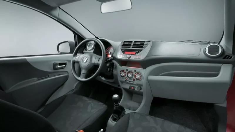 De Suzuki Alto is echt gemaakt voor stadsgebruik. Hij is lekker wendbaar en heeft een kleine draaicirkel. En door zijn compacte buitenmaten is hij eenvoudig in te parkeren. Het zicht rondom is daarbij prima, alleen schuin naar achteren wordt het zicht belemmerd door de brede achterste raamstijlen. De besturing is elektrisch bekrachtigd maar voelt desondanks wat aan de zware kant. De auto stuurt wel met voldoende precisie. Een grote klacht hebben we over de trekkracht in de vijfde versnelling. In het hoogste verzet is echt totaal geen trekkracht meer voorhanden. Op de snelweg moet je dus terug naar z’n vier om vlot in te halen. Dat wordt op den duur vervelend. Pas boven de 4.500 toeren per minuut gaat de motor echt lekker trekken. Met alle gevolgen van dien voor het brandstofverbruik. Suzuki claimt dat de 1.0 liter driecilinder (68 pk) gemiddeld 1 op 22,7 haalt, maar de praktijk wijst duidelijk anders uit. Wil je een beetje meekomen met het verkeer (en dus de motor op toeren houden) dan is 1 op 15 een stuk realistischer, zo bleek. Overigens is de auto wel opvallend stil op de snelweg. Een concurrent als de Renault Twingo is een stuk luidruchtiger.De Suzuki Alto van binnen