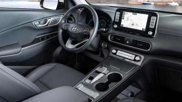 Dit is niet de eerste elektrische auto van Hyundai en dat werkt in het voordeel van de Kona. De SUV profiteert van slimmigheidjes als een verwarming die zich desgewenst volledig op de bestuurder richt (zodat de rest van het inzittendengedeelte niet hoeft te worden verwarmd) en flippers achter het stuur, waarmee je zelf bepaalt hoeveel remenergie er wordt teruggewonnen. Wie goed vooruitkijkt, hoeft op die manier nauwelijks nog te remmen. We gaan echter niet zover dat je de Kona met één pedaal kunt sturen; daarvoor schudt de semi-terreinwagen tijdens het regenereren te weinig snelheid af. Ook die andere elektrische Hyundai - de IONIQ - werd aanvankelijk ontwikkeld voor meerdere aandrijflijnen. Bij de elektrische variant kwam het batterijpakket desondanks vrijwel in zijn geheel onder de kofferbak te liggen, wat zijn weerslag heeft op het rijgedrag van de gezinswagen. Daar hebben de Koreanen van geleerd. De accu’s gaan in het geval van de Kona namelijk schuil onder de bagageruimte én de achterbank, zodat de SUV stabieler op de weg ligt. Verwacht overigens geen sportieve aspiraties, want besturing en demping zijn nog altijd nadrukkelijk op comfort afgestemd. Wanneer je het tempo opvoert, glijdt de Hyundai over zijn voorwielen weg. Hard gaat het ongemerkt al snel, want de aandrijflijn van deze Kona is 204 pk en 395 Nm koppel sterk. Dat wil wel bij het verkeerslicht! Wie zich met zulke specificaties al een caravan ziet aankoppelen, moeten we echter teleurstellen: net als veel andere elektrische auto’s mag ook de Hyundai geen aanhanger trekken. Ter compensatie bieden de Koreanen de mogelijkheid aan om een dakkoffer mee te nemen, met een maximaal laadgewicht van 80 kilogram. Een elektromotor maakt geen geluid, dus gaan je onderweg andere geluiden opvallen. Zoals dat ook al het geval was bij de IONIQ, kun je achter het stuur van de Kona goed de afrolgeluiden van de banden horen. Positief zijn de hoge zit, de fijne stoelen en de uitgebreide veiligheidsuitrusting. Standaard beschikt de Hyundai over een noodstopsysteem met voetgangersherkenning, adaptieve cruise control en vermoeidheidsherkenning. Een achteruitrijcamera zit eveneens bij de vanafprijs inbegrepen en dat is fijn, want het zicht over je rechterschouder houdt niet over. Wie kiest voor een hoger uitrustingsniveau, profiteert ook van zaken als een head up display en dode hoek signalering.De Hyundai Kona electric van binnen