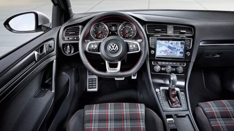 Van binnen is deze nieuwste GTI vooral een Golf. Hij heeft weliswaar en sportief stuur met een afgeplatte onderkant (zodat er meer ruimte is om je benen te bewegen tijdens fluks voetenwerk) en kuipstoelen met de kenmerkende ruitjesbekleding, maar je hebt niet meteen het gevoel in iets heel speciaals te zitten. Wel is het zo dat de hele lay out zeer gebruiksvriendelijk is. Het zicht schuin naar achteren houdt trouwens niet over. De achterste raamstijlen nemen flink wat zicht weg. De achterbank is ruim genoeg voor twee volwassenen en de bagageruimte is voor een auto in deze klasse meer dan voldoende ruim.De Volkswagen Golf GTI en het milieu