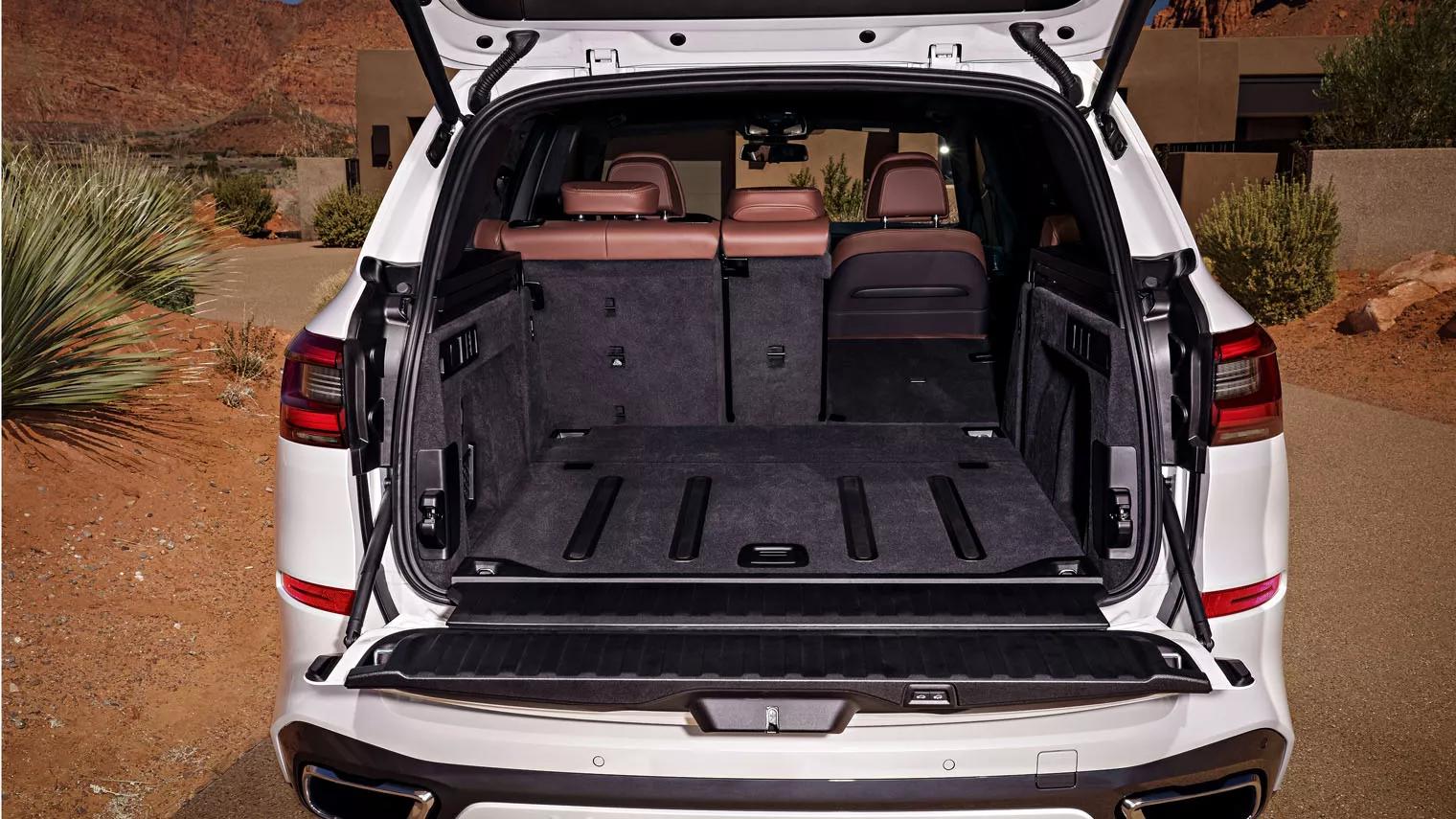 We kenden al het gekoelde dashboardkastje, maar de X5 beschikt ook over bekerhouders waarvan je de temperatuur kunt regelen! Desgewenst houd je voorin jouw koffie warm of je water koud. Die functionaliteit kost weliswaar € 267 extra, maar draagt wel bij aan de luxe beleving aan boord. Deze BMW is de eerste met een vernieuwde interface van het infotainmentsysteem. Het bekende iDrive, dat je met een handige druk- en draaiknop tussen de voorstoelen bedient, heeft een opfrisbeurt ondergaan waardoor het systeem nóg gebruiksvriendelijker werkt. Verder heeft de X5 een digitale klokkenwinkel. Bij een rivaal als Audi was het al langer mogelijk om de routekaart tussen je snelheidsmeter en de toerenteller tevoorschijn te toveren. Bij BMW kan dat voortaan ook, al moet je jouw toevlucht zoeken tot het menu van het infotainmentsysteem om de indeling van het instrumentarium te wijzigen. Bij Audi volstaat een druk op de knop, die speciaal daarvoor op het stuurwiel is ondergebracht. Een ergonomische misser, die de meeste mensen over het hoofd zullen zien. Zeker in het geval van onze testauto, die tegen meerprijs is voorzien van een door Swarovski onder handen genomen keuzehendel van de automaat. De vlakken zijn gepolijst en in het hart van de – doorzichtige – pookknop prijkt een ‘X’, die er met behulp van lasertechnologie is ingebrand. Een indrukwekkend gezicht, maar het kleinood voelt wat goedkoop aan; alsof je een stuk kinderspeelgoed in handen hebt. De verschuldigde € 695 kun je wat ons betreft beter in een extra zitrij steken, waarmee je nog eens twee passagiers kunt vervoeren. Hoewel de X5 bijna vijf meter lang is, houdt de binnenruimte niet over. Wie langer is dan 1.90 meter, zit achterin redelijk maar ook niet meer dan dat. Vooral omdat de achterbank nauwelijks ondersteuning biedt aan je benen. Vanwege de bescheiden middentunnel passen er achterin wel drie volwassenen naast elkaar. Helaas wordt de in- en uitstap bemoeilijkt, omdat je over de wielkuip naar binnen moet en het portier niet ver open gaat. Gelukkig kun je de rugleuning van de achterbank ook vanuit de kofferruimte neerklappen. Op die manier ontstaat een vlakke, maar oplopende laadvloer waaronder je nog wat extra spullen kwijt kunt. De kofferklep gaat in twee delen open: eerst de boven-, dan de onderkant. Een voetbeweging volstaat en als je wilt, kun je het onderste deel gesloten laten. De bagageruimte van de BMW is minimaal 650- en maximaal 1.860 liter groot; kleiner dan die van een alternatief als de Mercedes GLE.