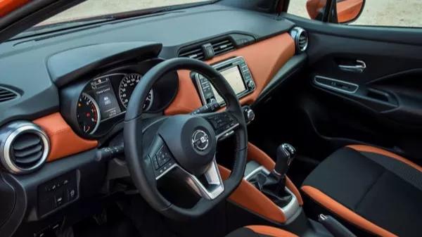 Een van de overeenkomsten tussen de Micra en de Clio is de benzinemotor uit onze testauto. Dat is een exemplaar met drie cilinders en een turbo, goed voor een vermogen van 90 pk. Een prima krachtbron, maar wel wat verlegen: je zult de Micra in deze configuratie op toeren moeten houden om een beetje op te schieten. Schakellui rijden is er ook niet bij; onderin mist de driepitter de trekkracht om in de derde versnelling een rotonde te nemen. De onderstelafstemming is sportief, het stuurgedrag wat licht. Desondanks gaan de meeste oneffenheden onopgemerkt onder de Nissan door. De wind en de banden laten zich onderweg wel goed horen. Da’s een minpuntje, want het is verder juist zo aangenaam aan boord. Je zit laag achter het meervoudig verstelbare stuurwiel en beschikt over goede stoelen, die ook de benen van langere automobilisten ondersteunen. Het zicht rondom is bedenkelijk. De ramen van de Micra zijn klein en de raamstijlen fors; met name over je schouder zie je bitter weinig. Gelukkig heeft de compacte gezinsauto een stel behoorlijke buitenspiegels en kun je hem optioneel uitrusten met Nissans spectaculaire 360 graden camera. Dan kijk je als het ware van boven op de auto neer en kunt hem alsnog eenvoudig inparkeren. De veiligheidsuitrusting is voor een model in deze klasse uitgebreid, met onder meer verkeersbordherkenning, een zelfstandig remsysteem bij stadssnelheden en rijstrookassistentie. De Micra doet dan je stuur trillen wanneer je onbedoeld van rijbaan wisselt. Zelf terugsturen doet de Nissan niet, maar hij geeft wel een subtiele remingreep waardoor de auto alsnog op zijn eigen rijstrook uitkomt. Het is beter dat je het niet zover laat komen, want plotseling remmen op de snelweg brengt weer hele andere risico’s met zich mee. Geen van de hiervoor genoemde systemen wordt overigens standaard meegeleverd. Alleen op de duurste uitvoering is de veiligheidsuitrusting standaard. Vanaf het tweede uitrustingsniveau kun je het bijbestellen tegen een bescheiden meerprijs van € 500.De Nissan Micra 0.9 IG-T 90 van binnen