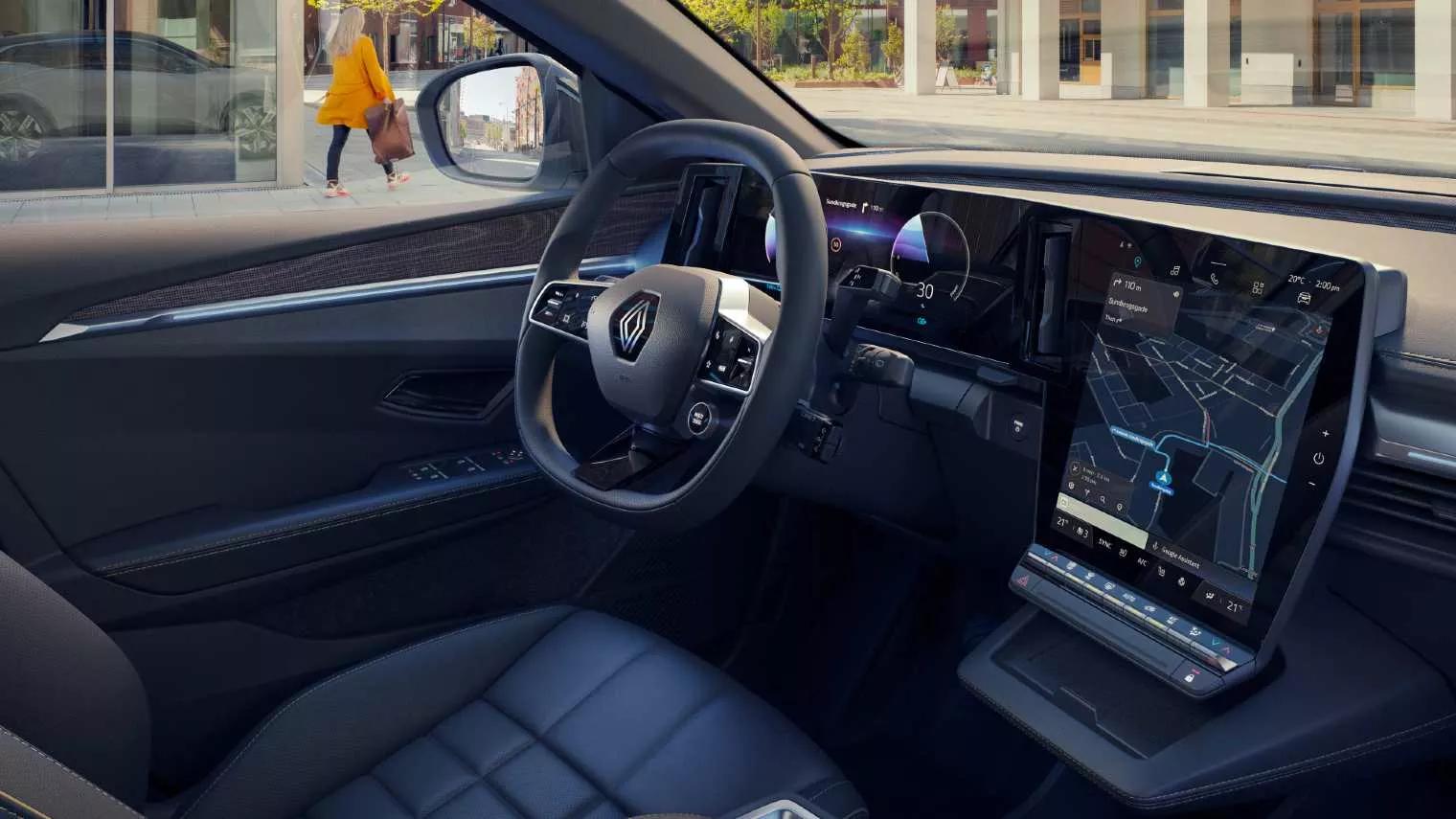 Hoewel de Mégane E-Tech Electric een compleet andere carrosserievorm heeft dan we tot nog van de populaire personenwagen gewend waren, resulteert dat niet in een veel grotere auto. Sterker nog: met een lengte van 4.21 meter is de C-segmenter 15 centimeter korter dan voorheen. De crossover is ook nauwelijks hoger dan het model dat hij vervangt, met dank aan Renaults nieuwe batterijtechniek: de gebruikte accu’s hebben een 40 procent kleinere omvang dan de exemplaren die op het moment nog in de Zoe worden gebruikt. Voor een EV weegt de Mégane niet eens zoveel: de door ons gereden uitvoering met het grootst mogelijke batterijpakket komt niet aan de 1.700 kilogram. In combinatie met een 220 pk en 300 Nm sterke elektromotor is de Renault niet overdreven snel, maar hij voelt wel lichtvoetig aan. Renault heeft ervoor gekozen om de Mégane voorwielaandrijving mee te geven. Dat is bij elektrische auto’s niet gebruikelijk, maar omdat de gezinswagen kleiner uitvalt dan zijn voorganger, wilden de Fransen niet dat de bagageruimte daar onder zou leiden. Nu voel je bij een voorwielaangedreven auto vaak de aandrijfkrachten in het stuur, maar daar heeft de Mégane geen last van. Sterker nog: de besturing is uiterst direct. De een vindt dat heerlijk, maar een ander kan het als onrustig bestempelen. Te meer, daar het onderstel ook continu in beweging is. De Renault kopieert als het ware het wegdek, aangewakkerd door de 20-inch lichtmetalen wielen onder onze testauto. De rust keert paradoxaal genoeg pas terug, wanneer je het beschikbare vermogen aanspreekt. Vanwege de coupé-achtige daklijn laat het zicht naar achteren te wensen over. In je achteruitkijkspiegel is het net alsof je door de brievenbus naar buiten kijkt! De Renault heeft een QR-code op de voorruit, zodat hulpdiensten eenvoudig kunnen nagaan hoe ze de stroom moeten uitschakelen bij een eventuele brand. Een treffende illustratie van de omvang van de aanvullende veiligheidsuitrusting, al staan de meeste hulpsystemen op de optielijst. Voor adaptieve cruise control, dode hoek bescherming en een waarschuwing voor kruisend verkeer moet zelfs bij het door ons gereden topmodel worden bijbetaald. Nu zitten veel van die reddende engeltjes bij elkaar in één pakket, maar dan nog heb je het over een meerprijs van tussen de 800- en 2.000 euro, afhankelijk van de uitvoering waar jouw interesse naar uit gaat. Voor een volumemerk als Renault is dat niet bepaald chic. Onthouden welke veiligheidsinstellingen jij plezierig vindt, is er ook niet bij. Het gevolg is, dat je iedere rit opnieuw bepaalde zaken aan of uit moet zetten. De automatische overname van de maximum snelheid bijvoorbeeld, waardoor de Renault plotseling fel in snelheid terugzakt. De Mégane begint immers meteen met regenereren! En zoiets uitschakelen doe je niet met een simpele knop op je stuur, maar diep weggestopt in een menu.