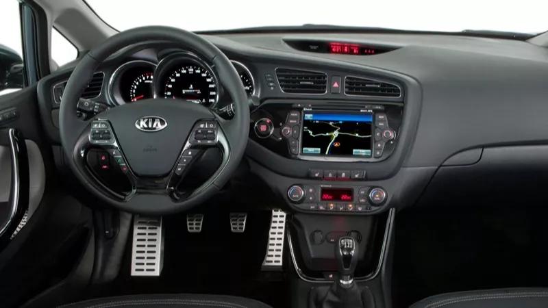 De Kia Cee’d is boven alles heerlijk comfortabel. Hij veert prettig en is opvallend stil. Gevoelsmatig zelfs beduidend stiller dan bijvoorbeeld een Ford Focus en een Opel Astra. De besturing zou nog wat directer en preciezer mogen. En erg mag meer gevoel in de stuurinrichting. In snel genomen bochten en op klaverbladen gaat de auto een beetje op één oor hangen, maar echt hinderlijk wordt dat nooit. De testauto is bovendien uitgerust met een zogeheten automatische DCT transmissie. Een bak dus met een dubbele koppeling. Die schakelt goed, maar hij zorgt er ook voor dat de auto wat lui overkomt. Hij heeft soms een halve seconde tijd nodig om de auto snelheid te laten ontwikkelen. Met de handbak kun je ongetwijfeld wat vlotter door druk verkeer laveren.De Kia Cee'd van binnen