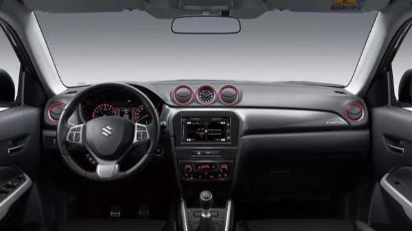 Een nieuwe motor is doorgaans geen reden voor een aangepast uiterlijk. Suzuki voorziet de Vitara 1.4 S echter van een andere grille en allerhande rode accenten om het sportieve karakter van de krachtbron te onderstrepen. Vlot is de motor zeker; het blok heeft 1.4-liter inhoud en is goed voor 140 pk. Je hoort de krachtbron wel nadrukkelijk. Bovendien is de combinatie met de door ons gereden, zestraps automaat een ongelukkige. De bak schakelt nooit wanneer jij dat wilt: hij wisselt veel te snel van verzet, zodat je in de bocht vaak in een te hoge versnelling zit. Terugschakelen gaat juist onbehouwen. Gelukkig is de transmissie ook voorzien van schakelflippers. Door zelf het schakelmoment te bepalen, heb je meer plezier onderweg. Een scheurneus is de Suzuki nog altijd niet. Hij stuurt te licht en zijn stugge onderstel kan niet verhullen dat de auto in bochten overhelt. Bovendien maakt het de Vitara oncomfortabel op klinkerwegen. De hoge zitpositie is wel weer fijn, al hadden de dode hoeken linksvoor en rechtsachter best wat kleiner gemogen. Onze testversie was uitgerust met adaptieve cruise control. Dat een auto in deze prijscategorie over zo’n veiligheidssysteem beschikt, is een pré al werkt de rijhulp niet bij snelheden onder de 35 kilometer per uur. Gelukkig omvat de veiligheidsuitrusting van de Vitara ook een zelfstandig remsysteem.De Suzuki Vitara 1.4 S Boosterjet AllGrip automaat van binnen