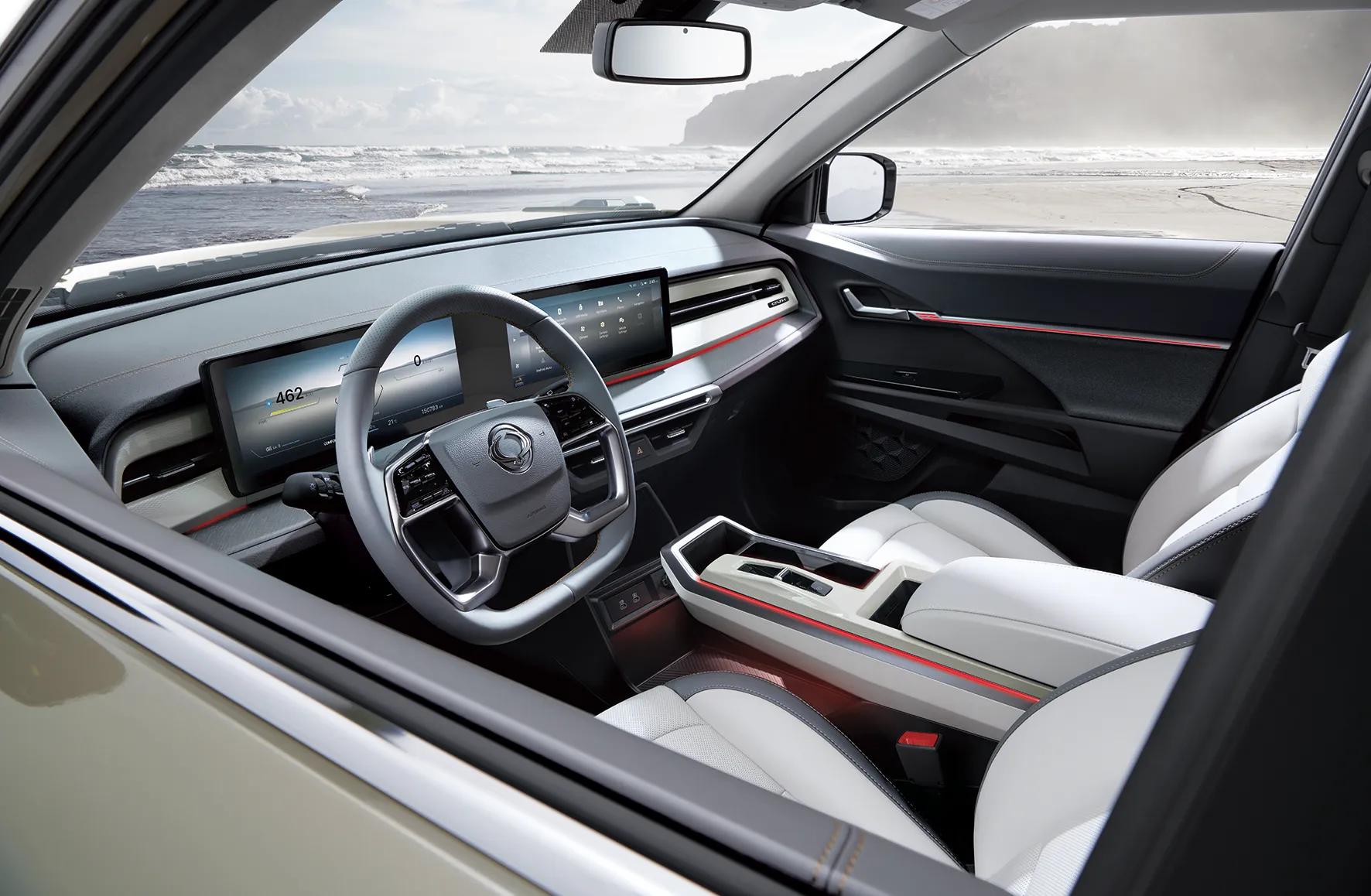 De bonkige Torres EVX heeft trekjes van een Hummer; het is in ieder geval een model dat je niet gauw over het hoofd ziet. De KGM heeft de maatvoering van een Hyundai Tucson: het is een compacte crossover. Prijzen beginnen bij € 41.250. Iedere Torres heeft standaard onder meer een navigatiesysteem, keyless entry, een achteruitrijcamera en (bedrade) Apple CarPlay aan boord.