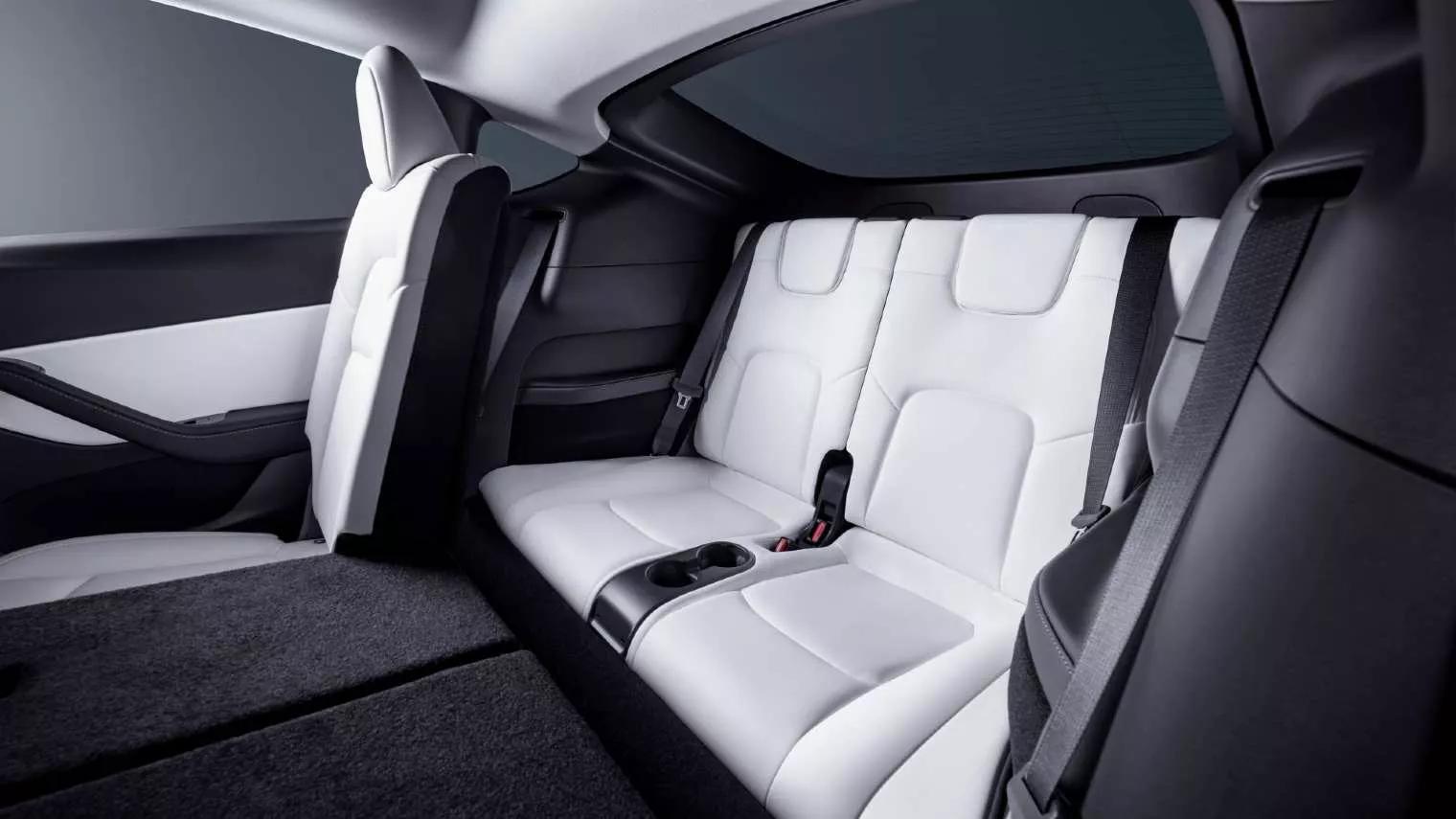 Tesla’s compacte crossover is niet eens zoveel langer dan de Model 3, maar wel een kleine twintig centimeter hoger. Het bestaande meubilair is letterijk ‘op blokken’ gezet, wat als voordeel heeft dat je meer profijt hebt van de achterbankzitting. Mensen met een bovengemiddelde lengte zitten in een Model 3 met opgetrokken knieën, maar in zijn grotere broer vind je ook als volwassene eenvoudig een ontspannen zithouding. De hoofdruimte is riant, met dank aan de elektrisch verstelbare rugleuning van de achterbank. Van een middentunnel is geen sprake, dus als het zo uitkomt, kun je achterin drie passagiers meenemen. Dat worden er straks zelfs twee extra, want Tesla is van plan de Model Y ook als zevenzitter in het leveringprogramma op te nemen. Daarvoor biedt de traditionele kofferbak meer dan genoeg ruimte, want onder de bagagevloer gaan twee diepe opbergvakken schuil. Klap je de rugleuning neer - dat gaat in de crossover in drie delen - dan ontstaat er een vlakke laadvloer. Zo vlak, dat je zelfs in de Model Y zou kunnen overnachten. De klimaatcontrole is er alvast op berekend, want door de stand ‘Camp’ in te schakelen kun je de hele nacht gebruik maken van de airconditioning en het entertainment aan boord. Zolang er bij het krieken van de ochtend maar minstens 20 procent stroom in de batterijen is achtergebleven. Kies je er liever voor om in de laadruimte jouw spullen te vervoeren, dan kun je 2.100 liter bagage kwijt. Daarmee deelt de Tesla een stevige duw uit aan de concurrentie, want alternatieven als die van Ford, Hyundai en Skoda weten raad met tot wel 400 liter spullen minder. En dan hebben de Mustang Mach-E en IONIQ 5 nog wel een extra opbergruimte voorin, zoals de Model Y dat ook heeft! Opvallend is het ontbreken van een hoedenplank. Nu is de achterruit van de Tesla dusdanig donker getint, dat je in de achterbak heus geen kostbare eigendommen kan onderscheiden. Maar een hoedenplank zorgt ook dat er minder rijgeluiden tot de cabine doordringen. De Model Y is al stil, maar had wellicht nog geruislozer kunnen zijn. Een bekend minpunt van Tesla’s was altijd hun gebrekkige afwerking. Recentelijk heeft de Model 3 echter een opfrisbeurt ondergaan, waarbij ook het interieur werd aangepakt. Daarvan profiteert deze Model Y mee: beetje bij beetje worden alle goedkope kunststoffen uit het binnenste geweerd. Het ziet er ook allemaal net wat fraaier uit achter het stuur, met een dashboard dat optisch doorloopt in de deuren en een hoogwaardige middenconsole, waarop je niet een maar wel twéé smartphones tegelijk kunt opladen. Dat de bouwkwaliteit is verbeterd, wil nog niet zeggen dat de Model Y ook een aansprekend interieur heeft. Het is nog altijd soberheid troef aan boord, met een centraal aanraakscherm als enige frivoliteit. Daarop vind je vrijwel alles terug, tot een complete entertainmentsectie aan toe. Een tekenblok bijvoorbeeld, of een spelcomputer om het wachten aan de laadpaal te veraangenamen Je kunt zonder natuurlijk, maar dit soort gekkigheden maken zo’n Tesla juist bijzonder.