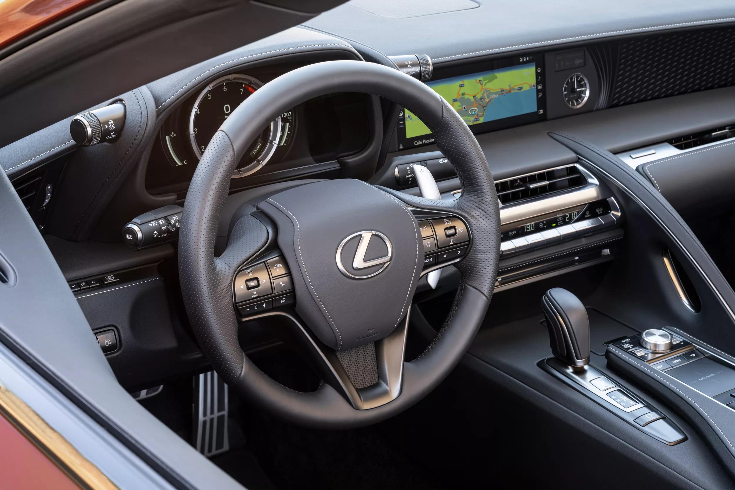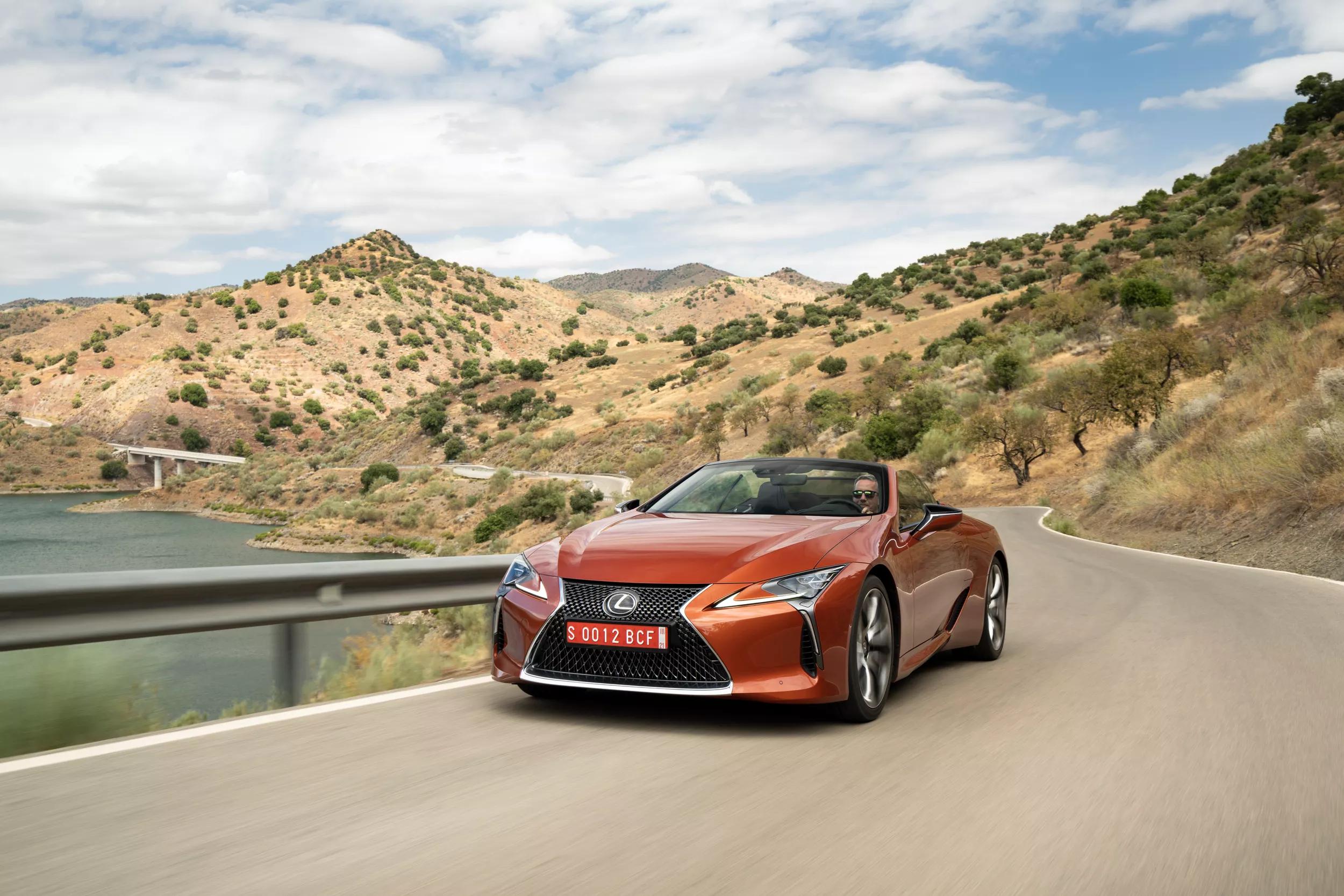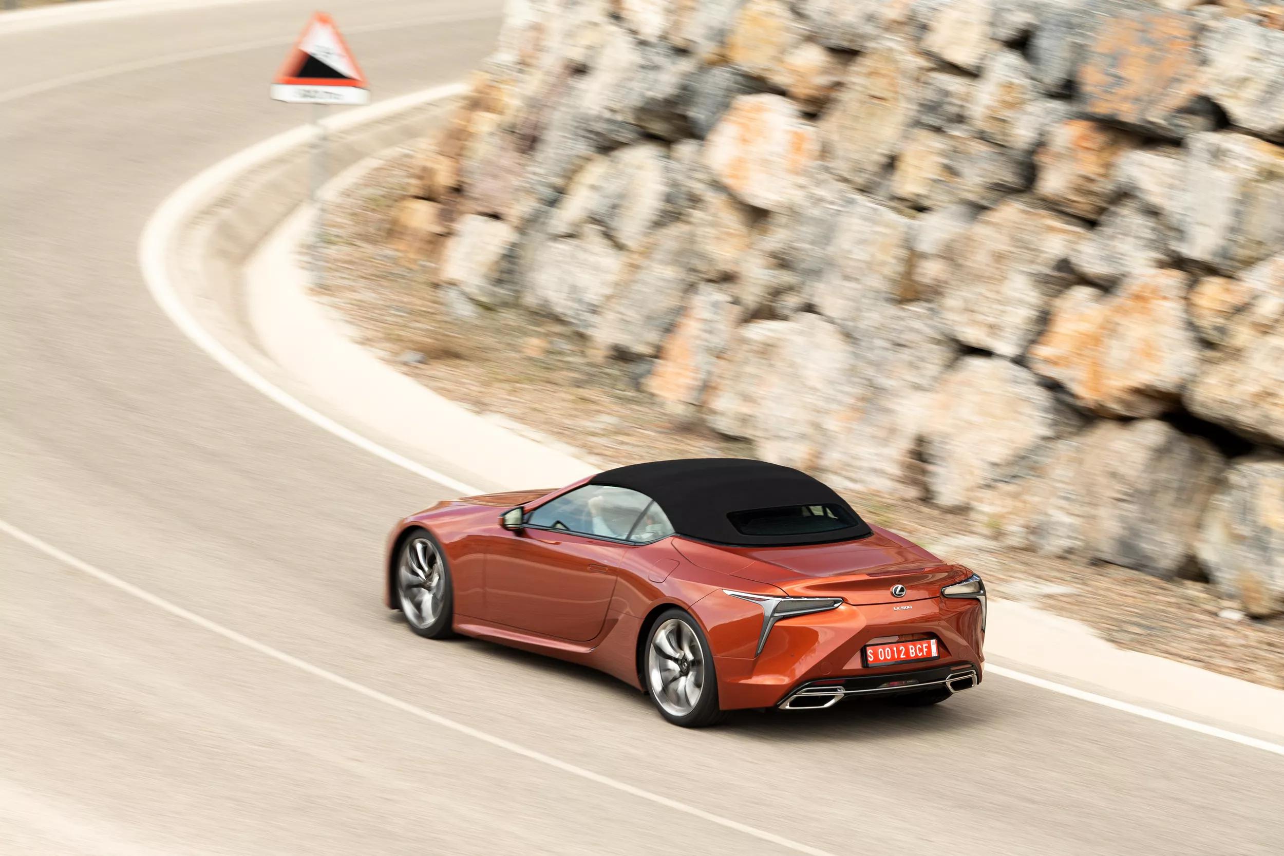 De recente opfrisbeurt ten spijt, is de LC nog altijd geen scheurneus. Met een leeggewicht van 2.450 kilogram is het een zware auto, die op een dwarsrichel nadrukkelijk een stapje opzij zet. Maar de horizon komt razendsnel dichterbij zodra je de Lexus op zijn staart trapt; de cabriolet sprint in 4,6 seconden van 0 naar 100 kilometer per uur.