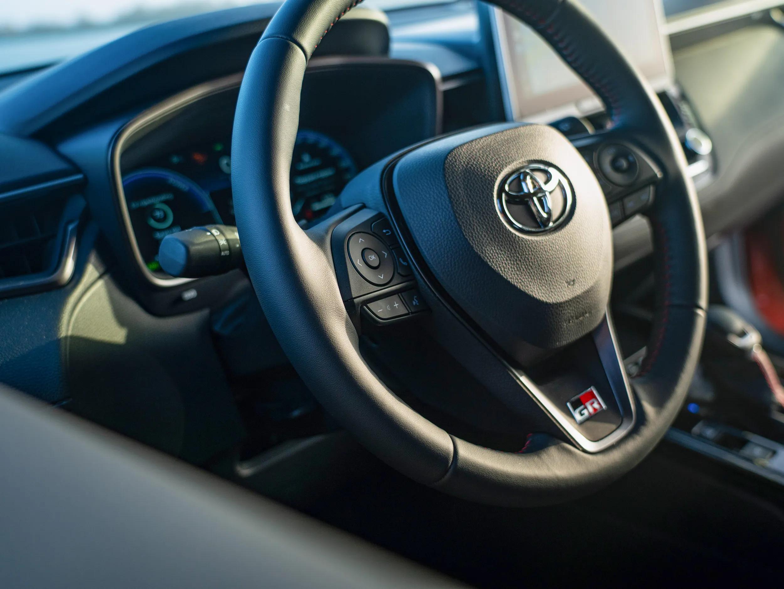 Achter het stuur realiseer jij je echter al gauw waarom de Corolla Cross zo’n bestseller is. De zitpositie is hoog, maar je zit niet op de bok. Je profiteert ondertussen wel van een eenvoudige instap en een goed overzicht. De GR SPORT heeft speciale sportstoelen, die voortreffelijk zitten. En dan is het ook nog eens aangenaam stil aan boord.