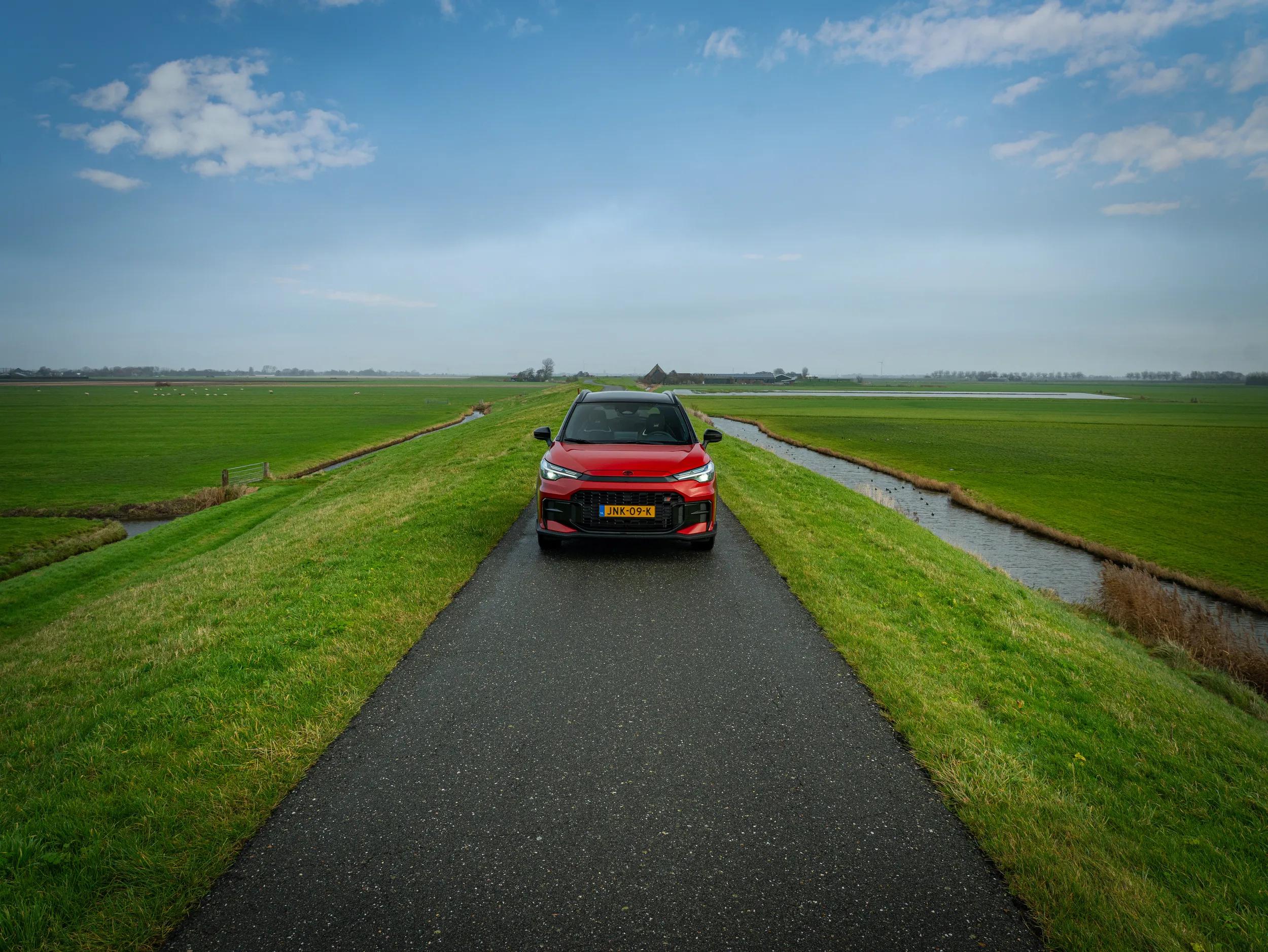Wij maakten onze testkilometers in het uithangbord van de facelift: een Corolla Cross GR SPORT, notabene in het brandweerrood. Op die manier kun je de Toyota onmogelijk nog een grijze muis noemen! Het motorvermogen is gelijk aan dat van alle andere uitvoeringen met de meest krachtige hybride aandrijflijn: 178 pk en 206 Nm. De GR SPORT is uitsluitend verkrijgbaar in combinatie met deze motor.