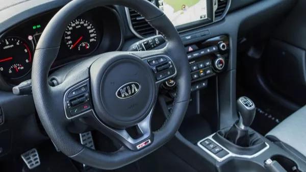 Koreaanse autofabrikanten maken met elke modelgeneratie een reuzensprong in bouwkwaliteit. Het rij- en dan met name het stuurgedrag bleef tot nog toe achter, maar eenmaal onderweg met de nieuwe Sportage blijkt dat ze ook op dit vlak hun huiswerk hebben gedaan. Voor het eerst stuurt een Kia met gevoel en het bochtgedrag is zelfs indrukwekkend. Dit soort semi-terreinwagens hebben toch altijd de neiging om wat over te hellen, maar zelfs de aan ons uitgeleende, extra zware vierwielaangedreven uitvoering geeft in een snel genomen bocht geen krimp. Wel spelen de 19-inch lichtmetalen wielen oneffenheden in het wegdek nadrukkelijk door naar de inzittenden. De kans is groot dat die ergernis afneemt met de montage van kleinere wielen. In ieder geval verdwijnt dan het meeste bandenrumoer, dat onderweg het enige is wat je hoort. De nieuwe 1.6-liter benzinemotor - mét turbo - is namelijk aangenaam stil en ook windgeruis blijft je aan boord bespaard. De krachtbron is 177 pk sterk en mag een aanhanger trekken van 1.900 kilogram. In het geval van onze met een automaat uitgeruste testauto slinkt dat trekgewicht tot 1.600 kilogram. We adviseren hoe dan ook om het gas diep in te trappen. De automaat met dubbele koppeling heeft van nature de neiging om op te schakelen voor de motor goed en wel 2.000 toeren draait. In de Sport-stand (standaard vanaf de ExecutiveLine-trim) blijft de Sportage juist hinderlijk in zijn toeren hangen. Hoewel we de Kia zeker niet traag willen noemen, zit het wagengewicht van dik 1.500 kilo de snelheidsbeleving wel een beetje in de weg. Maar áls de crossover eenmaal op stoom is, dan waan jij je ook ontastbaar. De zit is hoog, de ramen voor dit type auto groot. Daardoor heb je een goed overzicht, behalve over je schouder; achter heeft de grote gezinsauto een lelijke dode hoek. Gelukkig is de Sportage voorzien van forse buitenspiegels. De uitgebreide veiligheidsuitrusting - inbegrepen vanaf de ExecutiveLine - omvat onder meer verkeersbordherkenning, actieve rijbaanassistentie (let jij niet op, dan houdt de Kia zichzelf binnen de lijntjes), een waarschuwingssysteem voor kruisend verkeer en dode hoek signalering. Het geluidssignaal dat met dat laatste hulpsysteem gepaard gaat, is echter dusdanig luid dat je het liever uitschakelt. Te meer daar de Sportage je ook op verkeer in je dode hoek attendeert, wanneer je dat net doelbewust hebt ingehaald…De Kia Sportage 1.6 T-GDI GT-PlusLine 7DCT 4WD van binnen