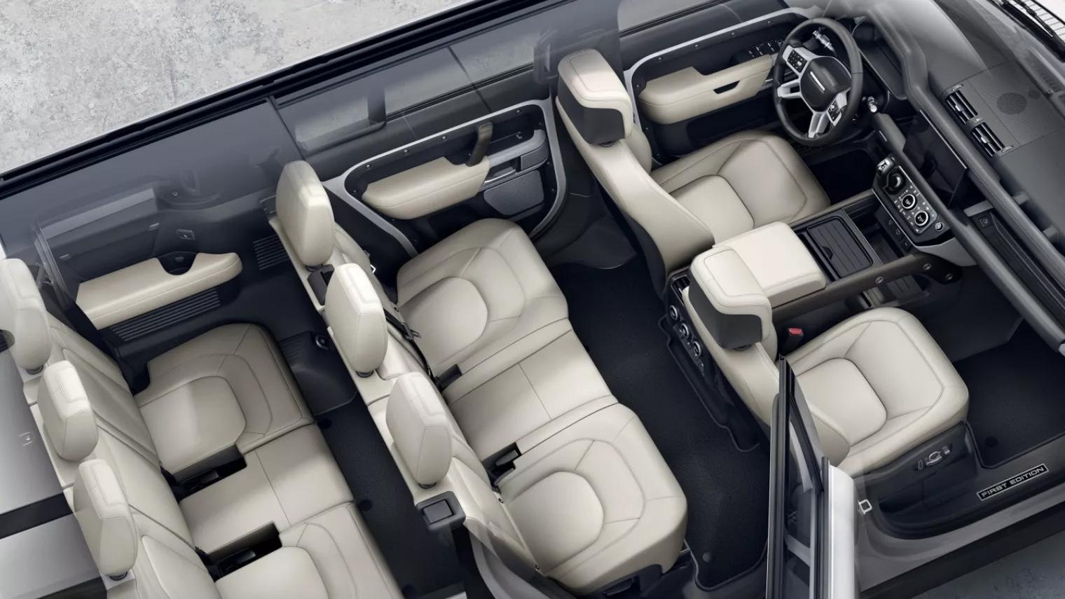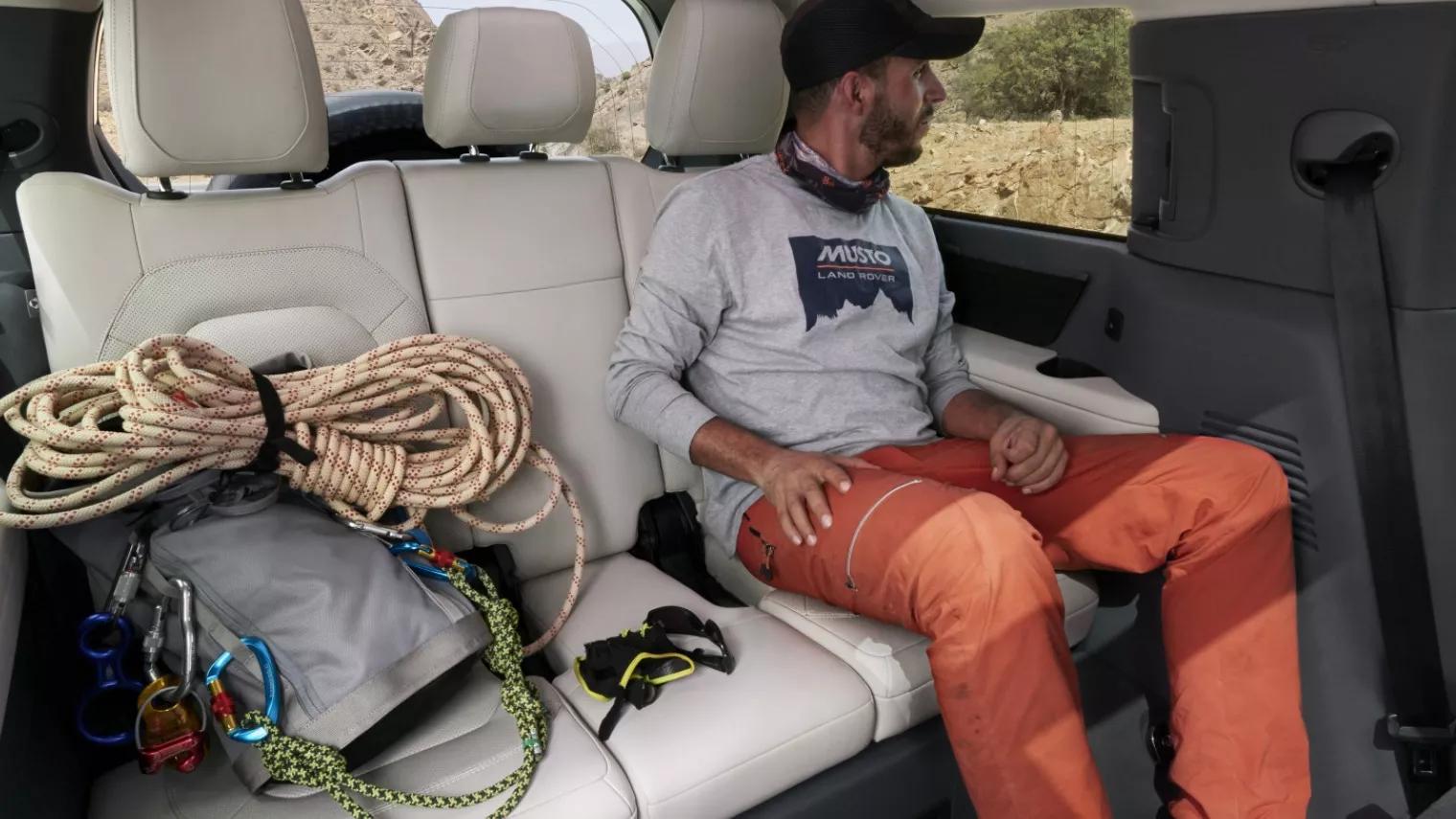 Het bestaansrecht van de Defender 130 zit ‘m natuurlijk in die derde zitrij. Je zit er op een volwaardige zitrij met echte stoelen en met veel been- en hoofdruimte. En met verwarming, met USB-aansluitingen en zelfs met een extra panoramadak zodat je genoeg daglicht hebt. De instap ernaartoe is ook prima. Volwassenen kunnen hier prima zitten. Bii veel zevenzitters van andere merken is er aanzienlijk minder ruimte op de derde zitrij en kunnen er eigenlijk alleen kinderen zitten. In deze auto passen trouwens vijf kinderzitjes! Ook op de middelste zitrij is veel been- en hoofdruimte. Je kunt de stoelen bovendien verschuiven zodat je voor de persoon die achter je zit, extra beenruimte kan maken. Of om meer bagageruimte te hebben als de derde zitrij is weggeklapt.
