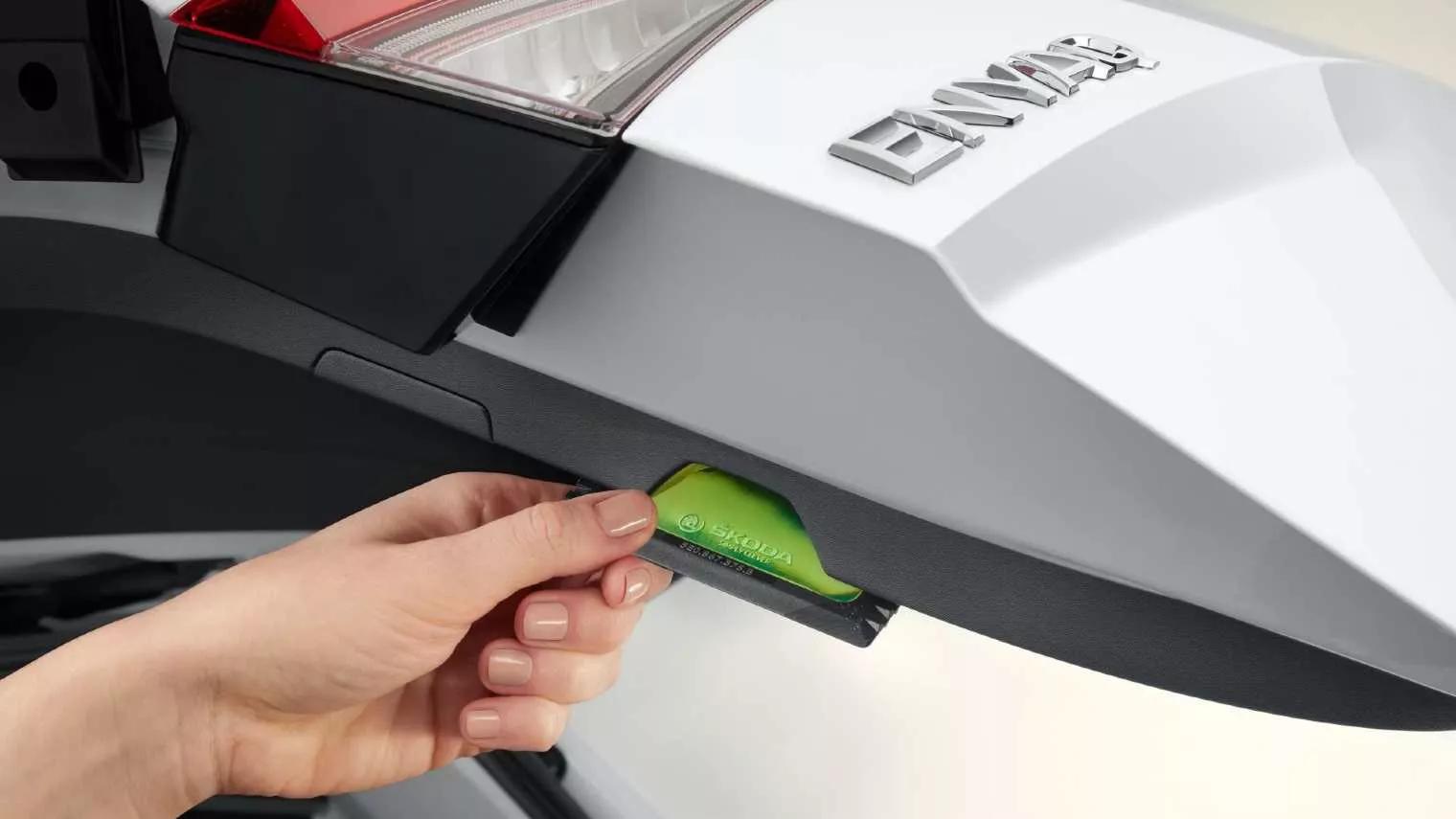 Deze Skoda is anders dan de overige modellen van de fabrikant, behalve wat het de traditionele merkwaarden aangaat. Want ook de Enyaq beschikt over typische handigheidjes als een ruitenkrabber in de achterklep en paraplu’s in de deuren. Tegen meerprijs is een speciale schoonmaakset voor je laadkabel leverbaar, zodat je die droog achterin kunt leggen na een nacht buiten in de regen. Je kunt de kabel in een unieke tas óf een vak onder de bagagebodem kwijt: voor beide opbergmogelijkheden dien je overigens bij te betalen. Dat brengt ons bij de tweede vaste waarde van de fabrikant: de binnenruimte is gigantisch. Of het nu gaat om de kofferbakinhoud (minimaal 585- en maximaal 1.710 liter) of de been- en hoofdruimte op de achterbank. Optioneel kun je nog kiezen voor een zogenaamd ‘Slaap-pakket’: daarbij zijn de hoofdsteunen achterin voorzien van nekkussens, om te voorkomen dat je een spontaan dutje met een zeer lijf moet bekopen. De Enyaq deelt op dit testonderdeel een paar gevoelige dreunen uit aan de Volkswagen ID.4. Niet alleen doet de binnenbekleding een stuk hoogwaardiger aan dan bij zijn onderhuidse tweelingbroer (op het voor de bovenzijde van het dashboard gebruikte bouwmateriaal na, dat hinderlijk weerspiegelt in de voorruit), maar in de Skoda heb je voor de belangrijkste functies tenminste nog traditionele bedieningsknoppen tot je beschikking! Daardoor is het uit schermen opgetrokken, futuristische instrumentarium nét wat vriendelijker in gebruik. De goede verstaander ziet inmiddels een patroon, maar ook voor twee stroompunten voor de achterpassagiers is een meerprijs verschuldigd.