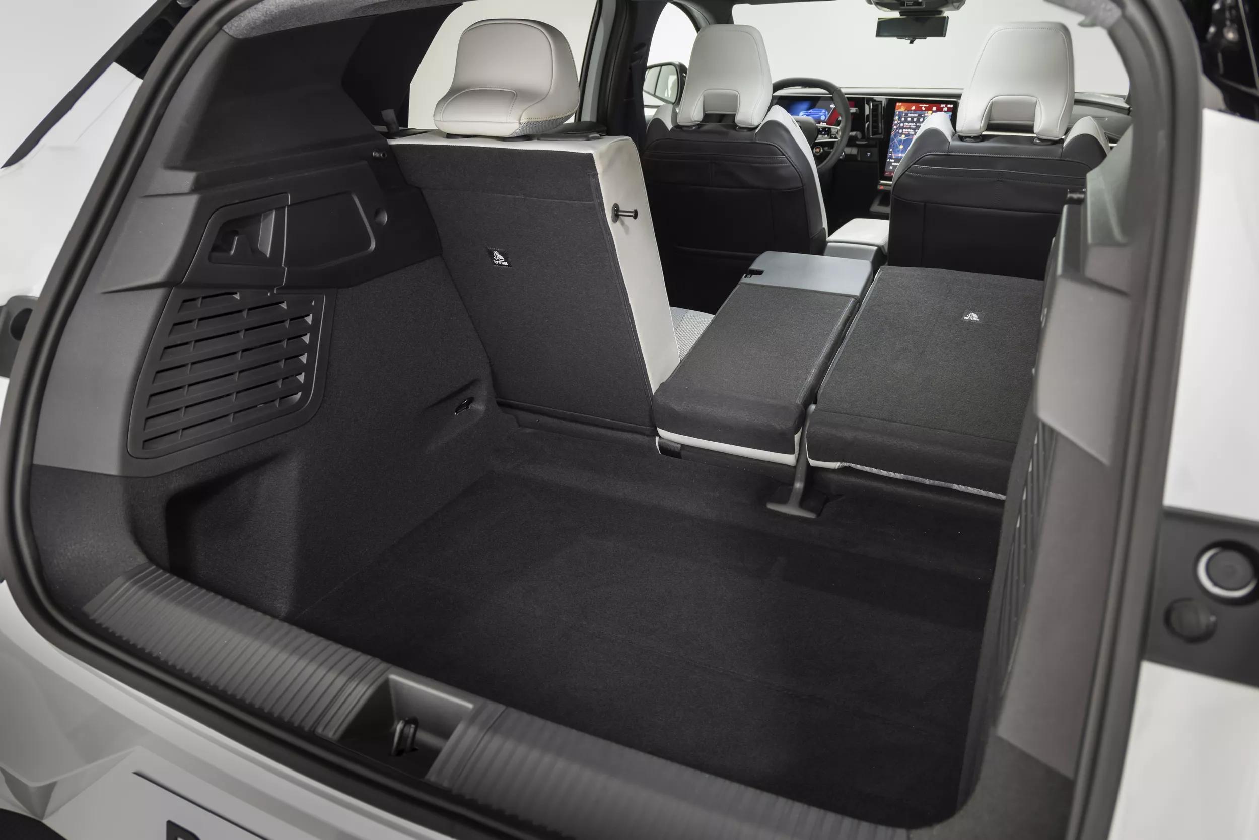 Wat we niet op de optielijst hebben kunnen terugvinden, is een variabele bagagebodem. De Renault mist daardoor een vlakke laadvloer en kent een fikse tildrempel. Een frunk ontbreekt eveneens, maar je kunt jouw laadkabels gelukkig kwijt in een groot diep vak onder de bagagebodem.