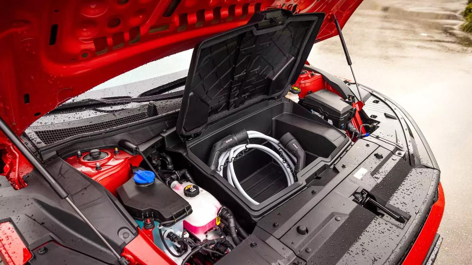 Achterin de EV6 is er meer dan genoeg beenruimte voorhanden, dankzij de wielbasis van 2.90 meter. Daar profiteren niet alleen de inzittenden van, maar ook hun bagage: de kofferbak heeft een inhoud van 480- tot 1.260 liter en dan rekenen we de maximaal 52 liter grote ‘frunk’ nog niet eens mee! Saillant genoeg is de hoofdruimte op de achterbank wél in orde. Zelfs voor volwassenen, die desgewenst de rugleuning kunnen kantelen. De stroompunten voor de achterpassagiers (allebei van het type USB-C) zijn weggewerkt in de wangen van de voorstoelen. De EV6 is sowieso een moderne auto, met futuristisch vormgegeven slaapstoelen (!) waar de achterpassagiers hun jas aan kunnen ophangen. Het digitale instrumentarium lijkt om de bestuurder heen gevormd, al behoort die blikvanger niet tot de standaarduitrusting. Verder prijkt er een joekel van een middenconsole tussen de voorstoelen, waarop je onder andere de startknop en de bediening van de automaat aantreft. De knoppen van de stoelverwarming zitten onhandig vooraan: precies op de plek waar je jouw arm neerlegt, wanneer je de sneltoetsen van het infotainment wilt gebruiken. Als je even niet oplet, heb je een hete bilpartij.