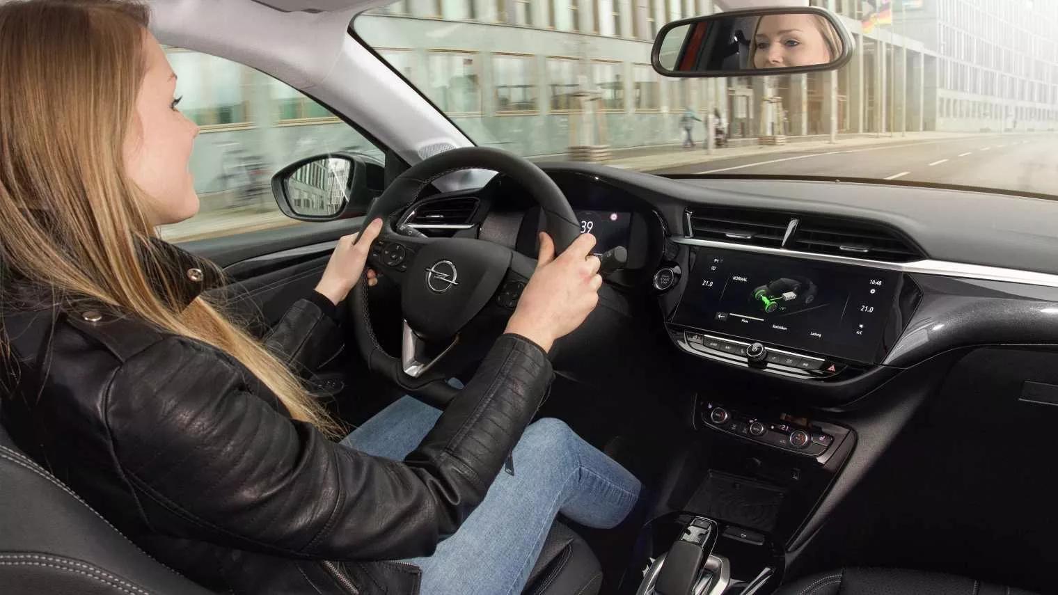Met dank aan zijn 50 kWh grote batterijpakket zou de Corsa-e op papier 337 kilometer ver moeten komen volgens de strengste Europese meetcyclus. Wij maakten kennis met de EV in de straten van Berlijn. Na een nacht laden gaf de boordcomputer een rijbereik aan van 220 kilometer, maar dat getal klom op naarmate we onderweg waren. De hoogste stand die we voorbij zagen komen, bedroeg 240 stuks. Het batterijpakket van de Opel is watergekoeld, zodat je onbeperkt gebruik kunt maken van de mogelijkheid om met de kleine gezinsauto te snelladen. De Corsa-e kan een laadsnelheid aan tot 150 kW: genoeg om binnen dertig minu-ten een voor 80 procent volle batterij te scoren. Bij een publiek laadpunt of aan een regulier stopcontact op krachten komen kan ook, maar duurt uiteraard langer. Hoe lang, bepaal je gedeeltelijk zelf: de Opel is zowel met een 1 fase-, als een 3 fase boordlader verkrijgbaar. Om zoveel mogelijk kilometers uit een lading stroom te verkrijgen, bieden de Duitsers je een tweetal besparende functies aan. Zo heeft de transmissie een speciale stand, waarmee je invloed hebt op de mate waarin de Corsa-e remenergie terugwint. En kies je voor de ‘Eco’-rijmodus, dan beperkt de Opel het beschikbare vermogen.