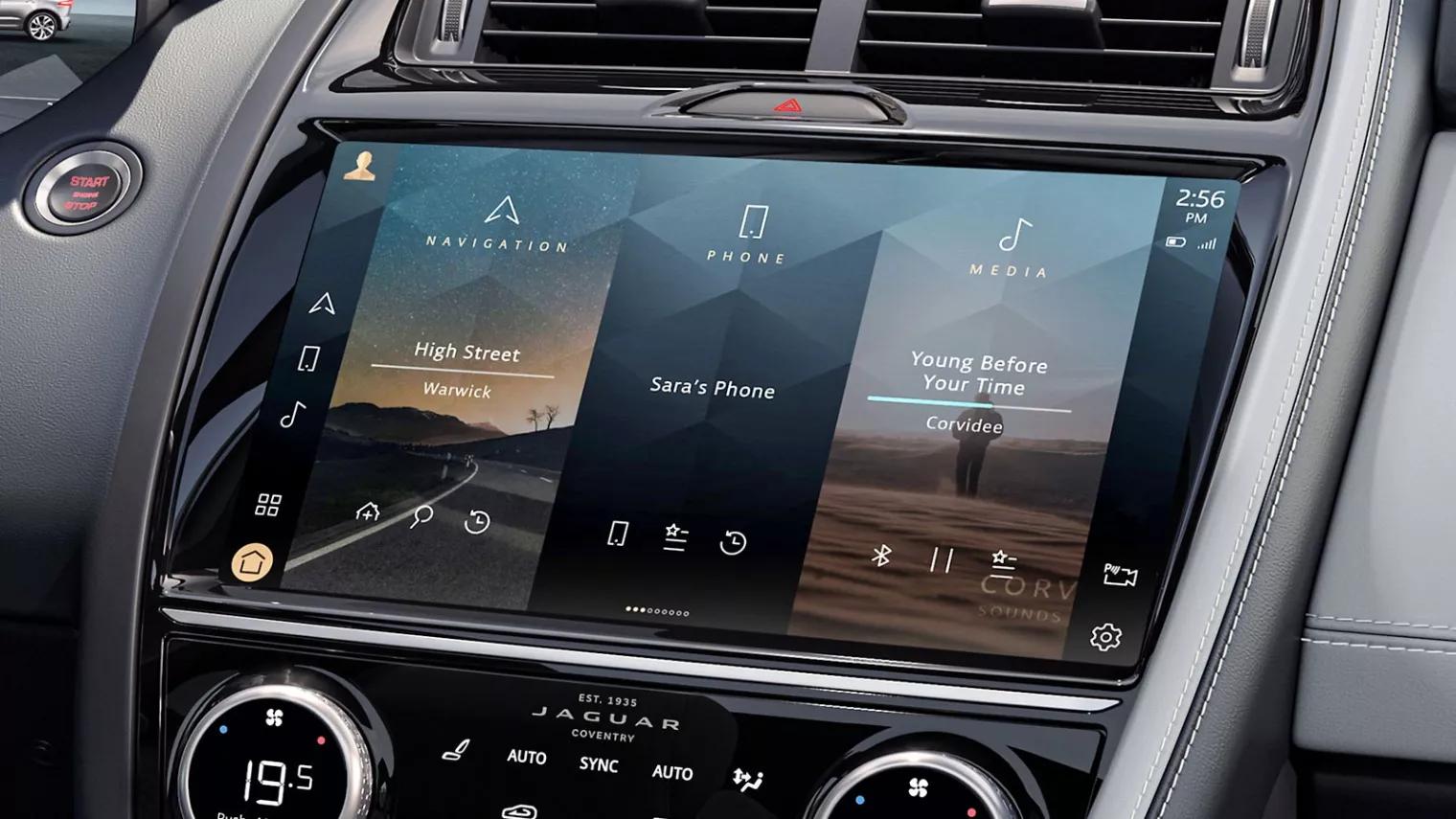 Zwaai de deur open en je ziet meteen waarom dit een Jaguar is. Het interieur ziet er smaakvol en luxueus uit. De schermen van het instrumentarium en het infotainmentsysteem zijn heel mooi dankzij de subtiele kleurstelling en het gebruikte lettertype. Geen glanzend zwart en blauwe letters, maar subtiel beige. Dat staat zoveel smaakvoller. Er zijn hoogwaardige materialen gebruikt; alles wat je aanraakt voelt zacht aan. De stoelen zitten uitstekend, het zicht op de digitale meters is goed en alle bedieningen zitten op logische plaatsen. Het head-up display is helder en duidelijk. En het infotainmentsysteem laat zich eenvoudig bedienen. Een pluim ook voor de fijn klinkende stereoinstallatie en voor het feit dat je je smartphone draadloos kan opladen. Ook op de achterbank is voldoende ruimte voor twee volwassenen. Met drie grote kerels op de achterbank wordt het dringen, dan is de grotere (lees: nog duurdere) F-Pace handiger. Dankzij een camera kun je in de binnenspiegel alles zien, ook al zitten daar die drie kerels. Je krijgt dan een camerabeeld geprojecteerd in de spiegel. Het kofferruim is met 494 liter niet erg groot. Kan er net mee door. Klap je de rugleuning van de achterbank weg dan ontstaat een vlakke laadvloer en meer ruimte: 1.234 liter. Ook niet groot dus. Onder de vloer vind je een grote bak waarin je de laadkabel kunt opbergen.