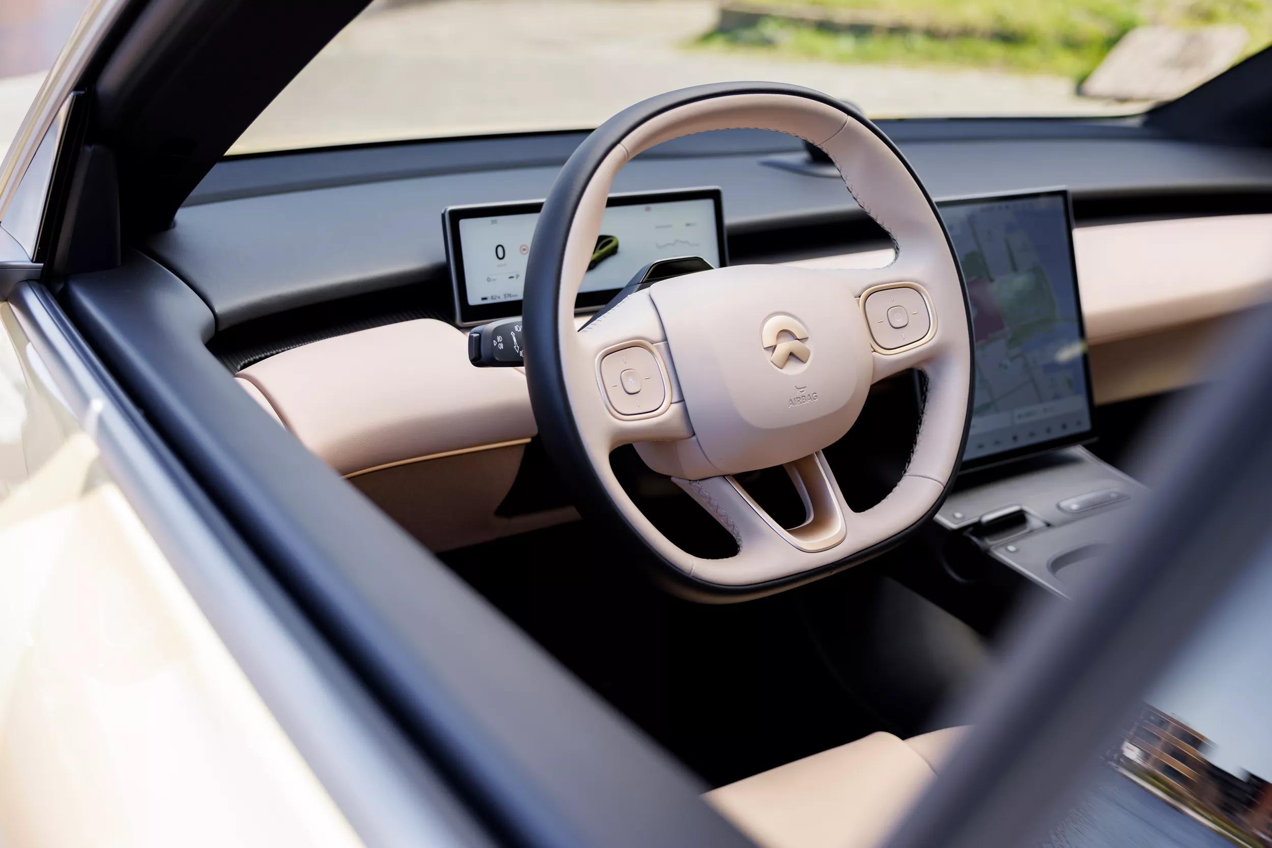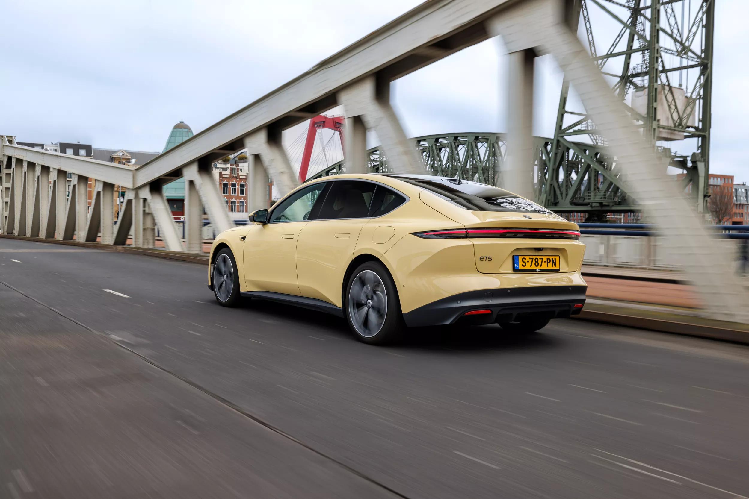 De scherpe besturing van de ET5 is te danken aan de voormalige BMW- en Jaguar medewerkers die inmiddels voor NIO werken. De vering en demping is voor het mooie iets te hard, zeker aan de achterzijde. En hoewel de sedan mooi stil is, valt daardoor extra op dat de wind rond de buitenspiegels wervelt.