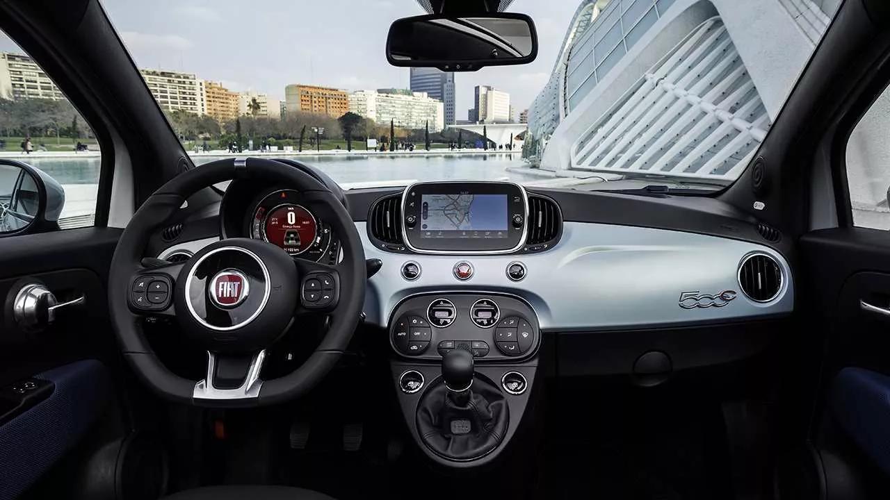 De elektromotor van de 500 schuilt onder de motorkap en het benodigde batterijpakket heeft een plekje gevonden onder de bestuurdersstoel. De nieuwe techniek gaat dus niet ten kosten van het weggedrag of de beschikbare bagageruimte. Die houdt met minimaal 185 liter niet over, maar gelukkig kun je altijd de rugleuningen van de achterbank nog neerklappen. Dat is bij de door ons gereden, ‘open’ uitvoering geen eenvoudige opgave. De 500C ontbeert een volwaardig kofferdeksel, maar heeft slechts een klepje: de laadopening valt daardoor bescheiden uit. Verder zoek je in de kofferbak vergeefs naar een in hoogte verstelbare bagagebodem, een vlakke laadvloer of een stroompunt. De achterzijde van de achterbank is trouwens niet afgewerkt: dat oogt niet alleen goedkoop, de kans op beschadigingen is ook nog eens groot. Passagiers kunnen in de olijke stadsauto maar beter voorin zitten: de achterbank is alleen geschikt voor kleine kinderen. Die hebben er vaak ook geen bezwaar tegen om aan boord te klauteren: iets wat met een driedeurs auto nu eenmaal onvermijdelijk is. Het is echter de vraag of de kroost nog steeds zo enthousiast is, wanneer ze tot de ontdekking komen dat ze achterin hun telefoon niet kunnen opladen en het zonder ventilatieroosters moeten stellen. Het binnenste van de Fiat is in ieder geval met Italiaanse flair aangekleed. Het ziet er vrolijk uit, maar het merendeel van het interieur is opgetrokken uit knalhard kunststof. De raambediening zit nog altijd op een onlogische plek (namelijk op de middenconsole), maar gelukkig heeft de 500 tegenwoordig wel een volwaardig dashboardkastje: voorheen monteerden de Italianen op die plek een simpele plank. Bovenaan de middenconsole prijkte in onze testauto een goed afleesbaar infotainmentscherm, dat Apple CarPlay ondersteunt. Er bestaat ook een telefoonapplicatie voor de kleine Fiat, zodat je thuis op de bank kunt zien of je de volgende ochtend moet tanken.