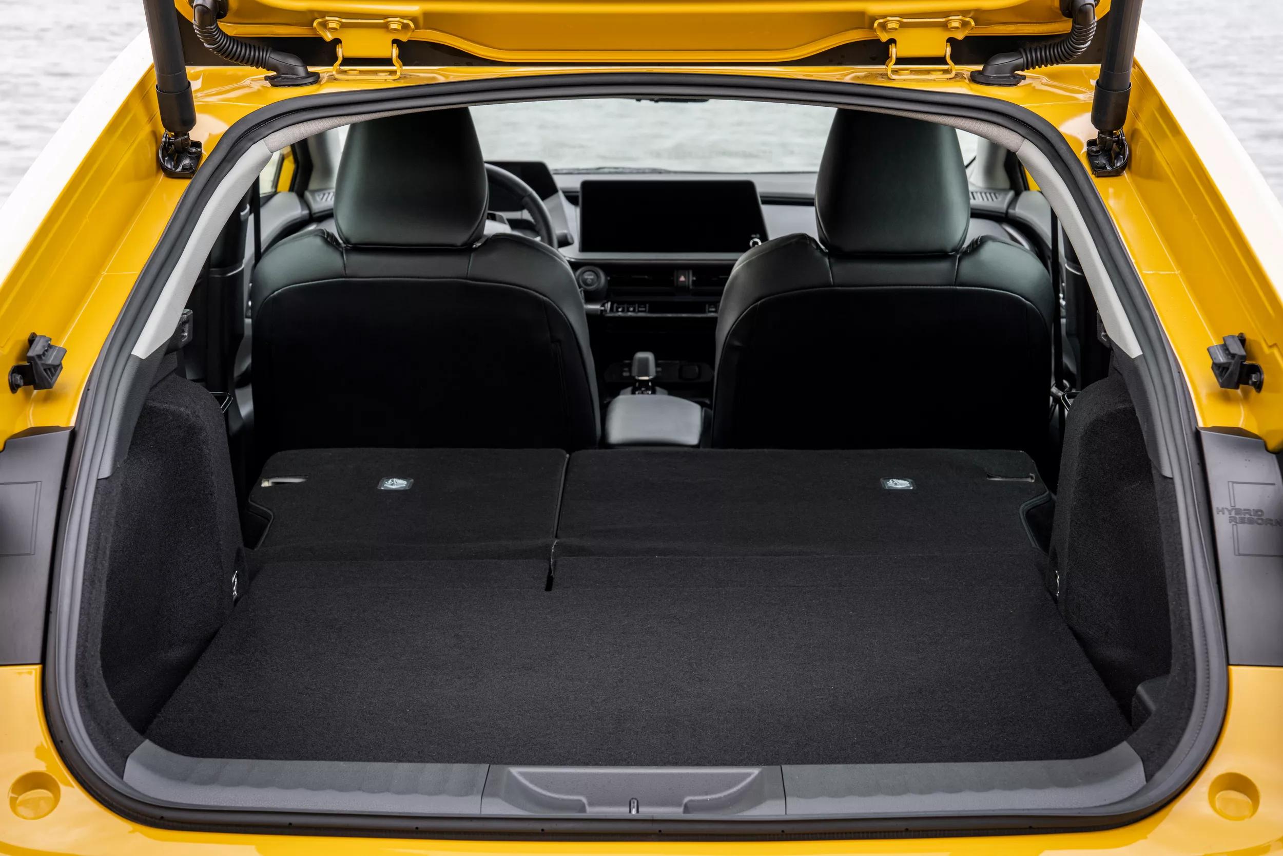 Een vierdeurs coupé kan ook om de verkeerde redenen een blikvanger zijn: omdat in- en uitstappen bijvoorbeeld een crime is. Dat is bij de Prius helaas het geval: wie langer is dan gemiddeld, moet heel diep bukken om zijn hoofd niet te stoten. De aflopende daklijn heeft uiteraard ook gevolgen voor de beschikbare hoofdruimte achterin: die is er niet of nauwelijks. De beenruimte is gelukkig wel in orde, maar desondanks is de achterbank hoofdzakelijk voor kinderen geschikt: de Toyota is niet alleen lager, maar ook korter dan voorheen.
