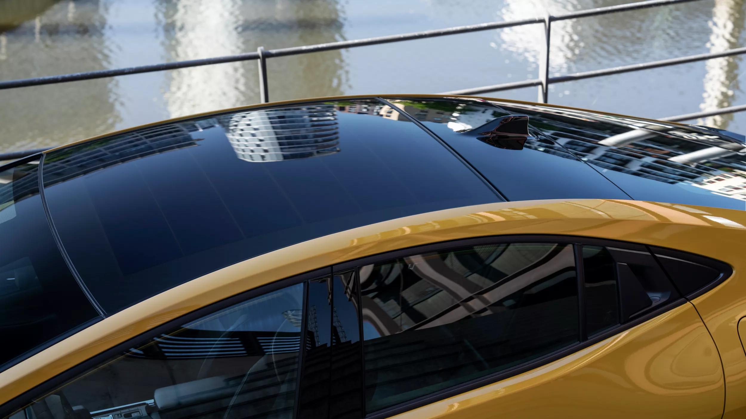 De duurste versie van de Toyota wordt met een set zonnepanelen geleverd. Daarmee zou je volgens de Japanners tot wel 1.250 kilometer kosteloos moeten kunnen afleggen. Dat is alleen niet helemaal waar, want de Nederlandse importeur verlangt voor die versie een aanzienlijke meerprijs van zes mille. Voor dat geld ontvang je echter ook stoelventilatie en synthetisch lederen bekleding. Aan de laadsnelheid valt echter niets te doen: die is en blijft een karige 3,5 kiloWatt.