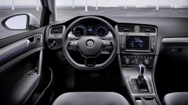 Het rijgedrag van de e-Golf is al even alledaags als zijn uiterlijk. De auto doet dusdanig vertrouwd aan, dat je er zo mee wegrijdt. Ware het niet dat deze Golf misschien nog aan een laadpaal vaststaat... De bedieningselementen ken je als je broekzak: sleutel omdraaien, de automaat in zijn ‘D’ en rijden maar. Je kunt echter nog meer met de Volkswagen. Laat je de auto in zijn ‘D’ staan, dan rolt de Golf uit zodra jij je gas loslaat. Met de hendel van de automaat kun je echter instellen dat de auto op zo’n moment energie terugwint en de batterij bijlaadt. Daarnaast kun je kiezen voor een normale rijmodus of een van de twee spaarstanden. In die gevallen begrenst de Volkswagen zijn snelheid tot 95 kilometer per uur, waarbij je in een noodsituatie nog altijd over het volledige vermogen kunt beschikken door het gaspedaal te vloeren. In de stand ‘Eco-plus’ wordt het koud aan boord, want dan gaat ook de verwarming uit. De Volkswagen-ingenieurs hebben het batterijpakket onder de inzittenden weggewerkt. Daarmee zit het grootste gewicht precies waar je het hebben wilt (laag en tussen de wielen), waardoor je de e-Golf als een skelter de bocht om kunt sturen. Met 115 pk is de elektromotor uit deze Volkswagen niet de sterkste elektrische krachtbron die er in dit segment te koop is, maar zolang je niet de meest rigoureuze spaarstand inschakelt, valt de elektrische Golf gewoon kwiek te noemen. ‘Multi-collision braking system’, een systeem dat voorkomt dat de auto bij een aanrijding van achteren tegen zijn voorganger aanschuift, is standaard. Parkeersensoren en een achteruitrijcamera zijn dat niet.De Volkswagen eGolf van binnen