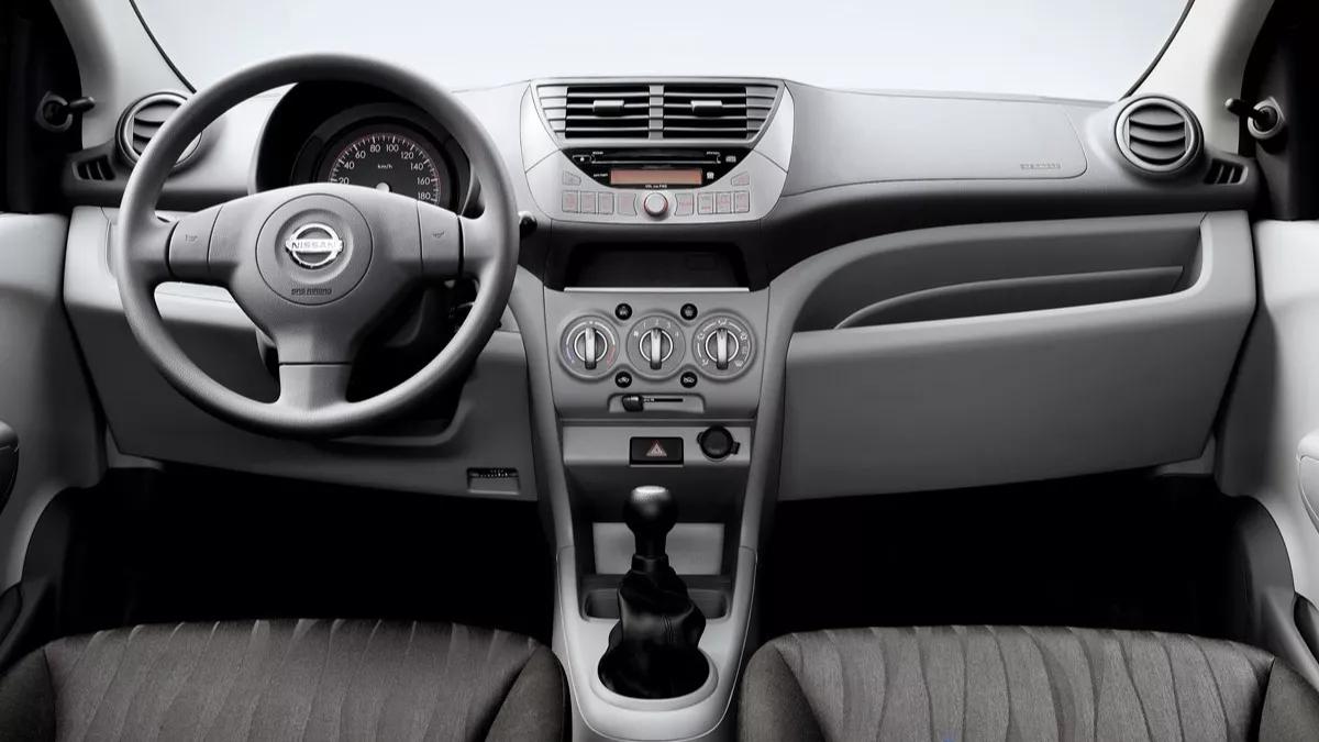 De Nissan Pixo is echt gemaakt voor stadsgebruik. Hij is lekker wendbaar en heeft een kleine draaicirkel. En door zijn compacte buitenmaten is hij eenvoudig in te parkeren. Het zicht rondom is daarbij prima, alleen schuin naar achteren wordt het zicht belemmerd door de brede achterste raamstijlen. De besturing is elektrisch bekrachtigd maar voelt desondanks wat aan de zware kant. De auto stuurt wel met voldoende precisie. Een grote klacht hebben we over de trekkracht in de vijfde versnelling. In het hoogste verzet is echt totaal geen trekkracht meer voorhanden. Op de snelweg moet je dus terug naar z’n vier om vlot in te halen. Dat wordt op den duur vervelend. Pas boven de 4.500 toeren per minuut gaat de motor echt lekker trekken. Met alle gevolgen van dien voor het brandstofverbruik. Nissan claimt dat de 1.0 liter driecilinder (68 pk) gemiddeld 1 op 22,7 haalt, maar de praktijk wijst duidelijk anders uit. Wil je een beetje meekomen met het verkeer (en dus veel schakelen en de motor op toeren houden) dan is 1 op 15 een stuk realistischer, zo bleek. Overigens is de auto wel opvallend stil op de snelweg. Een concurrent als de Renault Twingo is luidruchtiger.De Nissan Pixo van binnen