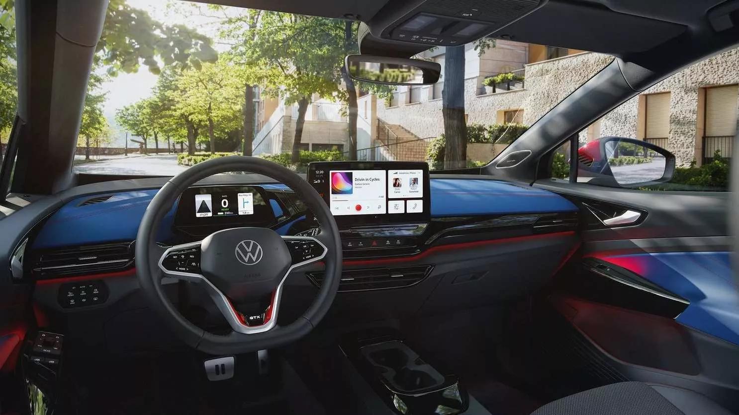 Het GTX-typeplaatje gaat in het geval van de ID.4 niet ten kosten van de geboden interieurruimte. De kofferbak is ook bij deze uitvoering minimaal 543- en maximaal 1.575 liter groot. Onder de in hoogte verstelbare bagagevloer kun je met gemak twee laadkabels kwijt. Gelukkig maar, want de Volkswagen ontbeert een tweede kofferbak aan de voorzijde, zoals de Ford Mustang Mach-E die bijvoorbeeld wél heeft. Op de achterbank is de beenruimte zelfs voor volwassenen overvloedig, maar de hoofdruimte wordt beperkt door het optionele glazen dak op onze testuitvoering. De achterpassagiers profiteren wel van eigen ventilatieroosters en stroompunten (van het type USB-C). Zoals binnen het gehele Volkswagen-concern inmiddels gebruikelijk is, zoek je ook aan boord van de ID.4 GTX tevergeefs naar traditionele bedieningsknoppen. Wil je de radio harder zetten, dan kun je dat het beste via de stuurwielbediening doen. Anders ben je aangewezen op een van de vele submenu’s van het infotainmentsysteem. Om de verschillende functionaliteiten te kunnen bedienen, moet je jouw ogen van de weg halen. Je zou ook kunnen proberen met een spraakcommando voor elkaar te krijgen wat je graag wilt, maar de manier waarop je iets aan de Volkswagen vraagt, luistert nauw. In de praktijk geven wij dus nog altijd de voorkeur aan ouderwetse bedieningsknoppen.