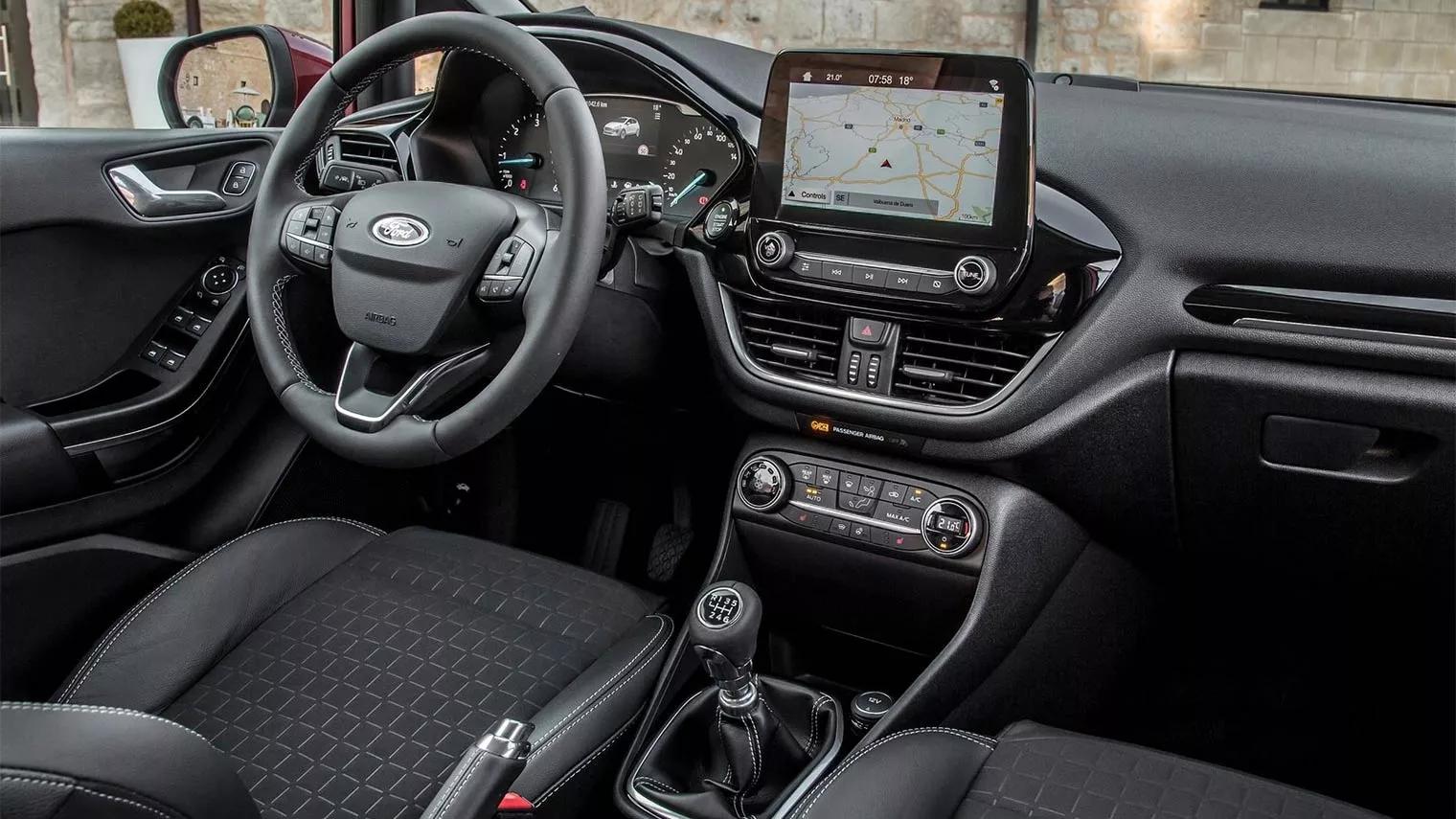 Deze Fiesta is volledig nieuw ontwikkeld, maar is tegelijk een duidelijke doorontwikkeling op zijn voorganger. Deze is iets groter, maar niet merkbaar ruimer, hij is net ruim genoeg voor vier volwassenen. De bagageruimte meet 303 liter en dat is voor deze klasse een heel normaal maatje. De standaard voorstoelen zijn bijzonder goed en over grotere afstand verstelbaar. Het instrumentarium is heel overzichtelijk. Diverse functies zijn te bedienen via een flink ‘touchscreen’. In de duurdere versies biedt de cruise control keuze uit een normale functie en ‘adaptief’, wat vooral in druk verkeer heel ontspannen rijdt. Bijzonder is de noodstopremfunctie, in combinatie met voetgangerdetectie, die óók in het donker werkt. In de wat duurdere uitvoeringen is ook het B&O audiosysteem vermeldenswaardig, want dat werkt geweldig. De Fiesta blinkt als typische Ford uit als je er eenmaal mee op weg bent. In het interieur blijft het opvallend stil. De veel gebruikte 74 kW-driecilinder benzinemotor is heerlijk soepel en voor het gros van de kopers meer dan krachtig genoeg. Zoals het een echte Ford betaamt, stuurt en schakelt de Fiesta voorbeeldig. Dat maakt deze Ford niet alleen tot een prima gezinsauto, maar er valt ook echt rijplezier aan te beleven voor de verwende automobilist. Met die populaire 74 kW-motor is ook gemakkelijk een gemiddeld verbruik rond 1 op 17 haalbaar.