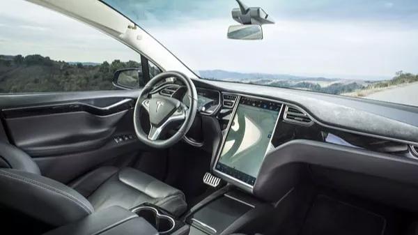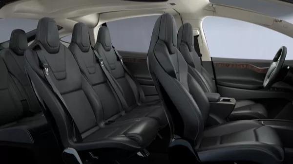 De Model X ligt als een blok op de weg. Dat mag je vrij letterlijk nemen, want dankzij de standaard aanwezigheid van twee elektromotoren en vierwielaandrijving weegt de Tesla maar liefst 2.390 kilogram. Doorgaans zijn zware auto’s fijne reiswagens en dat geldt ook voor de Model X, zolang je het formaat van het lichtmetaal maar in de gaten houdt. Standaard staat de door ons gereden 100D al op 20-inch wielen, maar dat kan nog twee inches groter. We raden het af: mede dankzij het bandenrumoer is het gehorig aan boord van de Tesla. Op de achterbank, pal naast de spectaculaire vleugeldeuren, heb je daar nog het meeste last van. Temeer daar de wind vrij spel heeft rond de hoge koets. De precieze besturing en het stevige, maar comfortabele onderstel kunnen zich meten met die van Duitse luxewagens, al worden oneffenheden nadrukkelijker aan de inzittenden doorgegeven. Zonder de optionele ‘Ludicrous Mode’, waarmee de Model X in 3,1 seconden van 0 naar 100 kilometer per uur accelereert, is de elektrische ruimtewagen nog steeds venijnig snel. De reguliere 100D heeft voor zo’n sprintje slechts 4,9 seconden nodig. De Model X is de eerste Tesla met een hoge zitpositie. De instap wordt verder vergemakkelijkt door een automatisch portier: zodra je met de sleutel in de buurt komt, gaat de bestuurdersdeur open. Dat handigheidje moet overigens wel van de optielijst komen en kost de lieve som van € 6.300. De bijzondere achterportieren zijn voorzien van sensoren, zodat ze geen schade aanrichten. De verklikkers nemen het zekere voor het onzekere: in parkeergarages ontstond geregeld een te krappe doorgang om nog de auto in te kunnen. Op een reguliere krappe plek wilde de deur niet eens open! Bij onze eerdere kennismaking viel op dat de zogenaamde falcon wing doors geruime tijd nodig hebben om open te gaan. Die wachttijd is door de Amerikanen inmiddels verkort. Bovendien kun je in de menu-instellingen aangeven of de deuren in zijn geheel open moeten, of de spreekwoordelijke vleugels een tandje minder mogen uitslaan. Handig wanneer het buiten regent en je gauw naar binnen wilt. De Model X heeft de primeur van een stel nieuwe voorstoelen. Die bieden meer zijdelingse steun. Bovendien zijn de hoofdsteunen niet langer geïntegreerd. Zet je de rugleuning rechtop, dan bewegen de hoofdsteunen naar boven. Wij eindigden met de onderkant van het ding tussen onze schouderbladen en dat zit niet lekker. Optioneel is de Tesla verkrijgbaar met een tweetal rijhulpsystemen, die onder de naam ‘Auto Pilot’ in de brochure staan. Daaronder vallen parkeerassistentie, adaptieve cruise control en de meest vooruitstrevende rijstrookassistent die je momenteel op een productieauto kunt bestellen. De Model X houdt zichzelf namelijk niet alleen keurig tussen de lijntjes, hij kan complete klaverbladen ronden en voegt ook zelf in- en uit! Met behulp van een radar, vier camera’s en 12 lange afstandssensoren is de elektrische reus in staat om in alle richtingen en bij elke snelheid om zich heen te kijken. Al die toeters en bellen ten spijt, valt de MPV slecht te overzien: de raamstijlen zijn fors. In het verleden is bovendien herhaaldelijk gebleken dat Tesla-eigenaren de werking van de beschikbare hulpsystemen overschatten. Om overmoedigheid te voorkomen, hebben de Amerikanen de mogelijkheden van Auto Pilot daarom ingeperkt. De auto waarschuwt drie keer dat je het stuur moet beetpakken, waarbij het dashboard op een gegeven moment hinderlijk gaat knipperen. Geef je dan nog geen gehoor, dan schakelt de Model X het hulpsysteem uit en kun je het de rest van de rit niet meer gebruiken. Bij een eerdere update van het besturingssysteem voegde Tesla al een recirculatiestand toe, die de inzittenden moest beschermen tegen een eventuele aanval met nucleaire wapens (!). Inmiddels beschikt de auto ook over een functie die zelfstandig ingrijpt wanneer je op een hete dag je kinderen of de hond in de auto laat zitten; de temperatuur wordt binnen nooit hoger dan 40 graden en dat voor wel 12 uur lang. Met behulp van een applicatie op je smartphone kun je de Model X bovendien laten in- en uit parkeren terwijl je er zelf naast staat.De Tesla Model X 100D van binnen