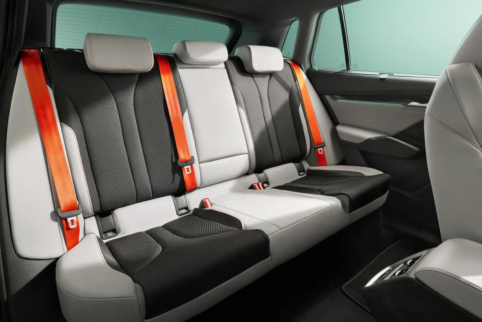 Achterin zit je als een vorst, daar laat de Elroq met gemak alle concurrenten achter zich. Alleen de middenconsolebak steekt wat ver het achtercompartiment in, waardoor je in het midden wat moeilijk je benen kwijt kunt. De afwerking is mooi en nauwkeurig, met zelfs deurvakken die met stof zijn bekleed. Er zijn mooie materialen gebruikt.