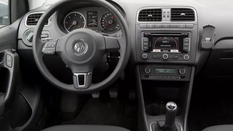 De term BlueMotion betekent wel iets meer dan alleen maar een zuinige dieselmotor. Het omvat een keur aan maatregelen om het verbruik terug te dringen. Zo is deze Polo voorzien van banden met een lage rolweerstand en speciale spoilers voor, achter en op het dak om de stroomlijn te verbeteren. Er zit een start-stop systeem op. En de overbrengingen van de vijfversnellingsbak zijn aangepast. Dat laatste merk je meteen bij het rijden. Die bak neemt behoorlijk grote stappen. Dat nodigt niet uit tot sportief rijden. Maar het is wel een invitatie om spaarzaam met de brandstof om te gaan. Een indicator op het dashboard geeft aan wanneer het goede moment is aangebroken om door te schakelen. De bak schakelt overigens prima. Verder doet het goed werkende start-stopsysteem ook nog een duit in het besparende zakje. De motor kan lage toerentallen goed aan. Maar als je dan accelereert, bromt de motor wel een beetje. Eenmaal op snelheid is de driecilinder motor vrij rustig en kun je lang en comfortabel kruisen. Ondanks zijn kleine cilinderinhoud voelt hij zich op de snelweg heel erg thuis. En hij kan nog 173 km/h toppen ook. Goed om te weten dat je met deze Polo ook een aanhanger mag trekken tot een gewicht van 800 kilogram. Het onderstel voelt comfortabel aan. Alleen is de achterzijde een tikkie hard gedempt. Dat merk je vooral als je over een verkeersdrempel rijdt. In snel genomen bochten is deze Polo heel voorspelbaar. Alleen op een nat wegdek lijkt hij wat meer last van onderstuur te hebben. Maar dat heeft te maken met de speciale brandstofbesparende banden. Soms geven die iets minder grip op een nat wegdek.De Volkswagen Polo 1.2 TDI BlueMotion van binnen
