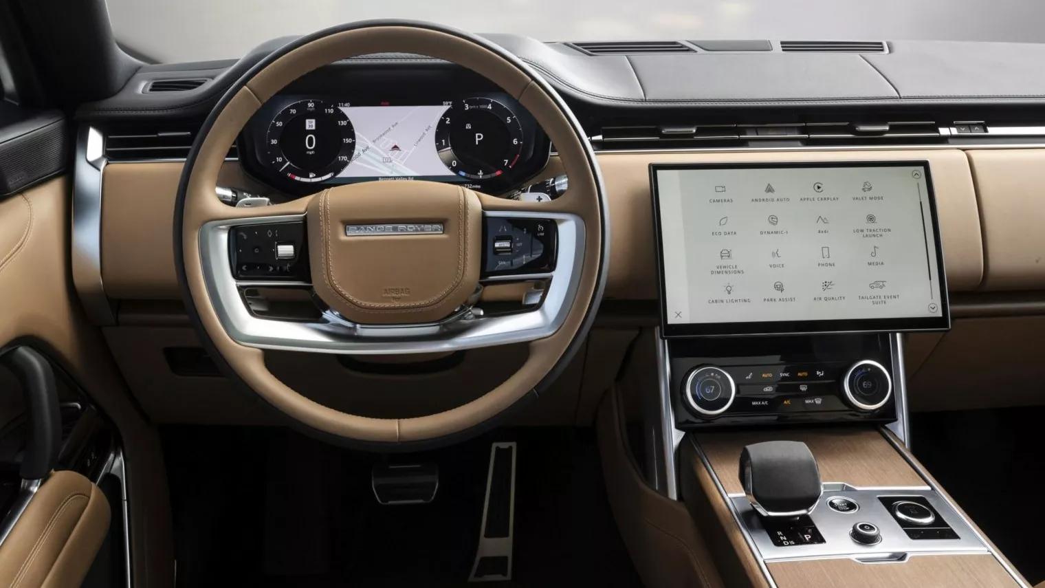 Het interieur van de Range Rover is een en al weelde en luxe. Dat begint al als je het portier dichttrekt. Je kan ‘m zachtjes in het slot laten vallen, de deur trekt zichzelf dan subtiel dicht. Softclose, noemt Land Rover dat. Ook fraai; de gordelhouders zijn subtiel verlicht. Het aanraakscherm is indrukwekkend van afmetingen en eenvoudig van bediening. Alleen de navigatie zo iets eerder zijn aanwijzingen mogen geven. De geluidsinstallatie klinkt subliem, de 3D camera´s zijn heel handig en hebben haarscherp beeld en zelfs op het onderste deel van de achterklep (die naar beneden toe opent) heeft twee bekerhouders. De laadruimte is enorm, zeker als je de rugleuningen wegklapt. Dat wegklappen doe je met een druk op de knop, aan de zijkant in de achterbak.