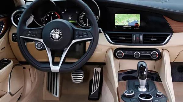 Wat direct opvalt als je met de Giulia rijdt is de precieze besturing. Je kunt de auto heel precies plaatsen waar je hem hebben wilt. Het gevoel in het stuurwiel en de mate van bekrachtiging zijn daarbij zeer goed gekozen. Fijn, zoiets wekt vertrouwen. De dempings- en veringskarakteristiek is aan de stevige kant maar voelt nooit oncomfortabel. Het grote voordeel van deze afstemming is dat wanneer je echt gas gaat geven, het onderstel veel informatie aan je doorgeeft. Zo voel je bijtijds waar de grenzen liggen. Dat is fijn, want de Giulia is in staat tot hoge bochtsnelheden, zonder daarbij over te hellen. Tel daar de fijne aandrijflijn bij op en het is duidelijk dat we hier met een volbloed sportsedan te maken hebben. Om de feestvreugde verder te verhogen heeft elke Alfa Romeo Giulia een DNA-knop. Daarmee kies je uit drie rijstanden. De N is de normale stand en in A staat hij in Advanced Efficiency (zeg maar de brandstof-bespaarstand) . Maar de stand die het meeste aanspreek is de D (van Dynamic). Schakel je die in, dan is de gasrespons kwieker en schakelt de bak op andere momenten – je trekt dan verder door in de versnellingen. Bij terugschakelen geeft hij dan een beetje tussengas: lekker! De achttraps automaat schakelt trouwens snel en mooi vloeiend. Alleen in fileverkeer blijft hij voor je gevoel soms net te lang in z’n 1 ‘hangen’. Voor de rest niks dan lof. De remmen vertragen prima en er zit genoeg gevoel in het pedaal. Diverse actieve systemen verhogen de grip (elektronische stabiliteitscontrole, anti-slip regulering), andere actieve systemen verhogen de veiligheid. De Giulia is standaard uitgerust met een noodreminstallatie (remt zelf als het een ongeluk ziet aankomen ende bestuurder niet of te laat reageert), heeft dode-hoek-signalering en lane departure warning.De Alfa Romeo Giulia 2.0T Super (200 pk) van binnen