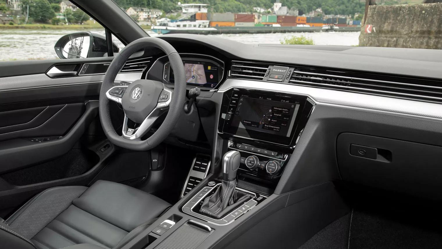 Bij de introductie van deze achtste modelgeneratie deed het kamerbrede ventilatierooster zijn intrede, dat over de volledige breedte van het dashboard loopt. Dat geeft het interieur van de Passat nog iets bijzonders, want zeker na de facelift is het interieur inwisselbaar met dat uit andere Volkswagens. We zien een digitaal instrumentarium en een fraai aanraakscherm en de middenklasser kan met het internet worden verbonden. Dat brengt allerlei handigheidjes met zich mee: je kunt bijvoorbeeld op afstand de verwarming inschakelen en zelfs de auto ontgrendelen met je mobiele telefoon behoort tot de mogelijkheden. Je mobiele telefoon kun je in de Passat draadloos opladen. Niet ieder toestel is daarvoor geschikt, zoals lang niet elke smartphone raad weet met de USB-C stroompunten waarvan de middenklasser is voorzien. Daarvoor verkopen ze weliswaar adapters bij de electronicawinkel, maar je auto dwingt jou op deze manier tot een extra aanschaf. Eerder hebben we ons kritisch uitgelaten over de gebruikte interieurmaterialen in de recente crossovers van het merk, maar deze Volkswagen steekt gelukkig in elkaar op een manier die niet alleen fraai is om naar te kijken, maar ook plezierig om aan te raken. De achterpassagiers hebben een zee aan beenruimte tot hun beschikking, maar het optionele panoramadak snoept kostbare hoofdruimte af voor wie langer is dan 1.90 meter. Een fikse middentunnel maakt, dat een eventuele derde achterpassagier met opgetrokken knieën zal moeten plaatsnemen. De Volkswagen voorziet voor de inzittenden achterin in stroompunten én een eigen temperatuurinstelling. De kofferbak, naar wens elektronisch te openen met een zwaai van je voet, is met een inhoud van minimaal 650- en maximaal 1.780 liter misschien niet de grootste in zijn klasse, maar wel een van de grotere. Bovendien vind je achterin een verstelbare laadvloer en twee handige vakken aan weerzijden van de kofferbak. De rugleuning van de achterbank klap je neer met een van de hendels in de bagageruimte. Vervolgens ontstaat een vlakke laadvloer.