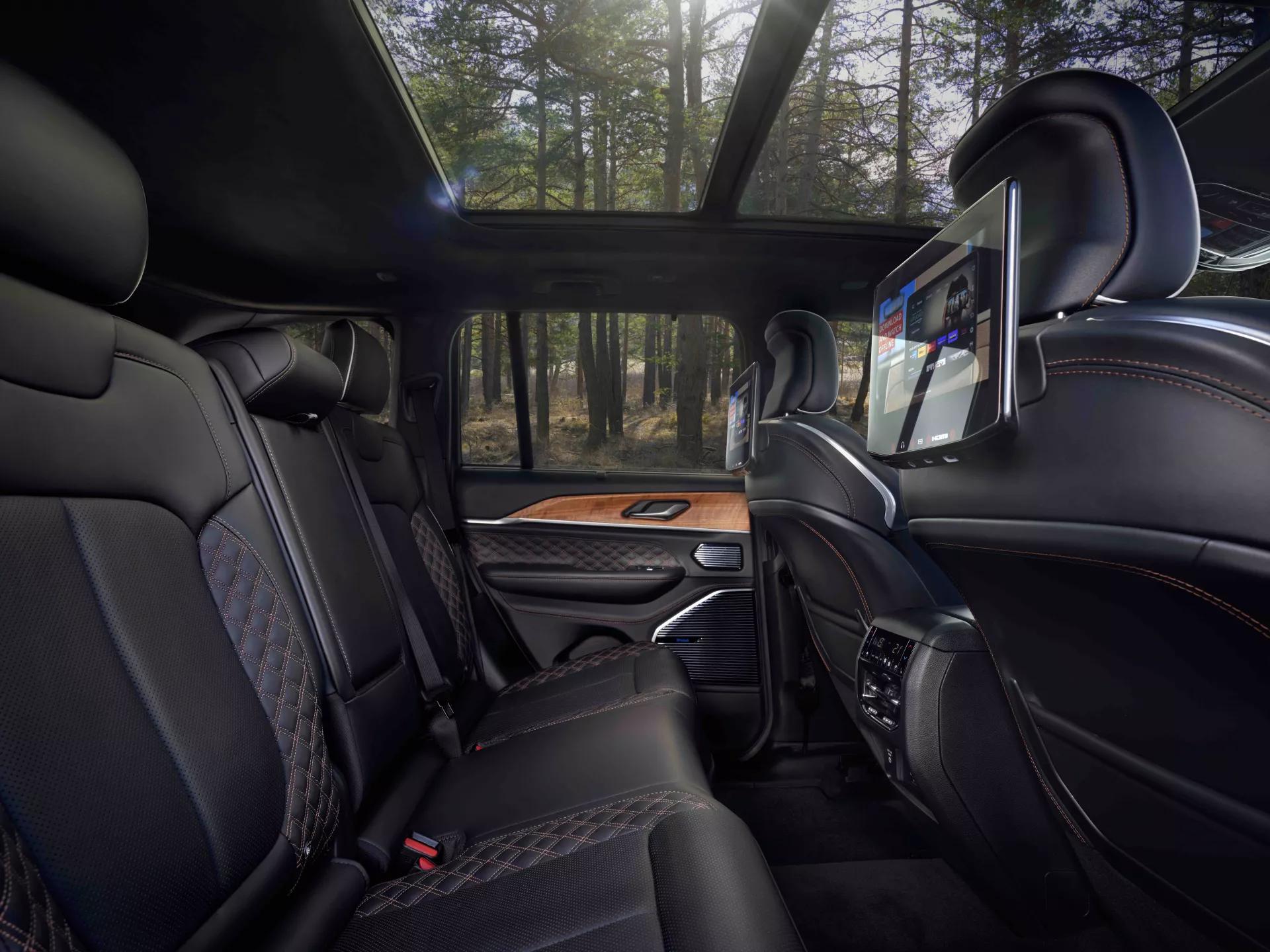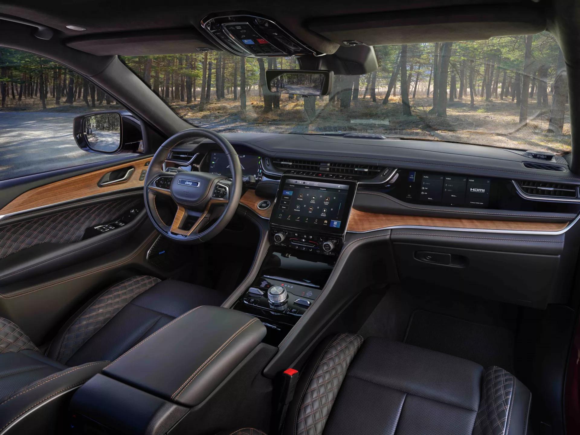 Leer, hout en twee fraaie digitale schermen: open de deur van de nieuwe Grand Cherokee en het is duidelijk dat de tijd bij Jeep niet heeft stilgestaan. Het interieur van de terreinwagen is zacht om aan te raken, maar zal nog steeds niet ieders smaak zijn: het gebruikte hout lijkt wel oranje en de stiknaden zijn grof. De ergonomie is bovendien een crime: je treft overal bedieningsknoppen aan, die niet altijd even logisch zijn gegroepeerd. In het geval van de elektrische rijmodi worden ze zelfs door een complete stuurkolom van elkaar gescheiden! De menustructuur op het infotainmentscherm is nog het meest logisch, al pakken de letters wel erg priegelig uit. Kleinere Jeeps hebben hier minder last van, omdat die meer onderdelen met hun Stellantis-zusjes delen.