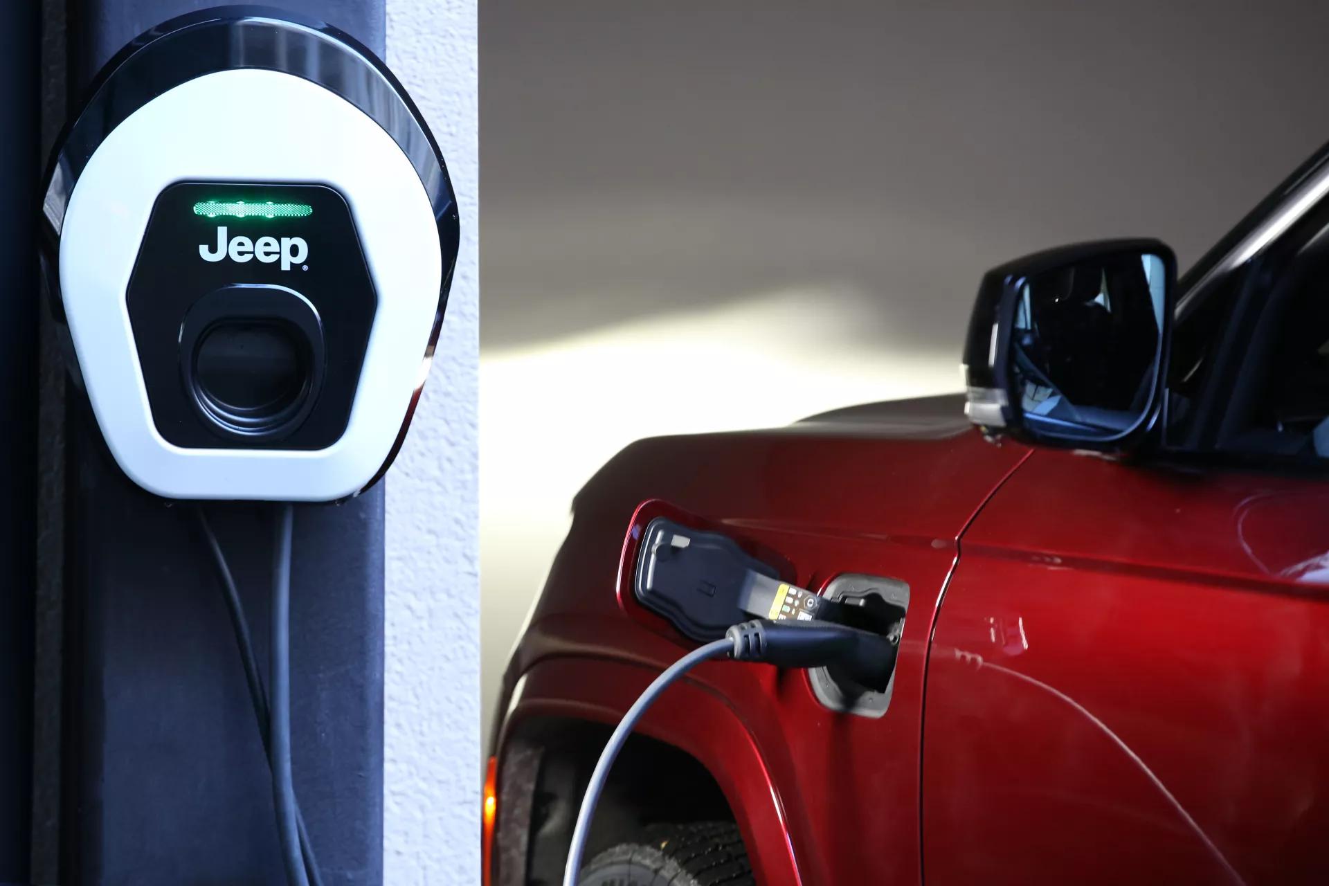 Je kunt er in de Jeep wel voor kiezen om wat stroom te bewaren of de verbrandingsmotor inschakelen om stroom aan te maken. De laadaansluiting zit ter hoogte van het linker voorportier. Met een wagenlengte van bijna vijf meter is het geen pretje om vooruit bij een laadpaal te parkeren. Temeer, daar je die plek na afloop van de laadsessie achterwaarts moet verlaten.