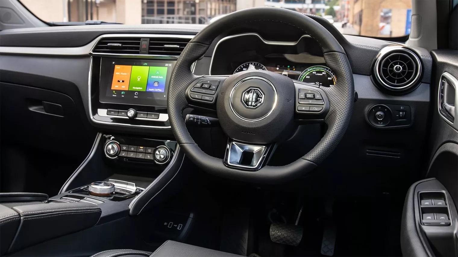 De Chinese auto’s die tot nog toe de oversteek waagden, staken slecht in elkaar: ze hadden aan de buitenzijde bijvoorbeeld lelijke pasnaden en de interieurs waren opgetrokken uit goedkope plastics. De MG is in dat opzicht een verademing: gooi een portier dicht en je hoort een geruststellend, zwaar geluid. De gebruikte kunststoffen zijn op sommige plekken nog hard, maar het geheel maakt een verzorgde indruk. Verwacht geen digitale klokkenwinkels: het dashboard van de ZS EV is nog klassiek van opzet, met traditionele bedieningsknoppen voor de belangrijkste functies. Het infotainmentsysteem dat er in zit, werkt traag en weerspiegelt hinderlijk in de zon. Verder missen we een aantal zaken, die we op Europese auto’s als vanzelfsprekend ervaren. Getint glas bijvoorbeeld, bekerhouders voor de achterpassagiers en een lichtje in de make-up spiegel. Op de achterbank is de beenruimte prima, maar het aan de duurdere uitvoering voorbehouden panoramadak snoept voor lange inzittenden de nodige hoofdruimte af. Een middentunnel ontbreekt, dus je kunt wel met drie volwassenen achterin zitten. De achterpassagiers moeten één enkel stroompunt delen, waar een kwetsbaar afdekplaatje op zit. Ventilatieopeningen ontbreken achterin. De kofferbakinhoud is 448 liter groot, wat heel behoorlijk is voor dit type auto: het batterijpakket gaat schuil onder de inzittenden. Verder beschikt de semi-terreinwagen over een in hoogte verstelbare bagagebodem, met twee diepe vakken aan weerszijden van de bagageruimte. Plek te over dus, om je laadkabels op te bergen. Klap je de rugleuning van de achterbank neer, dan ontstaat er een vlakke, zij het oplopende laadvloer.