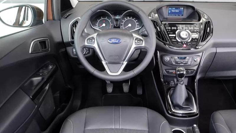 De Ford B-Max rijdt en stuurt prima en helt ondanks de hoge carrosserievorm niet hinderlijk over. Vering en schokdemping voelen vrij hard aan maar het rijcomfort is desondanks voldoende. De B-Max is uitgerust met Active City Stop, een veiligheidssysteem dat botsingen met verkeer dat vóór je rijdt of stilstaat helpt voorkomen. De B-Max is de eerste in z'n klasse met zo'n systeem. De zuinige eenliter driecilinder motor is er in twee varianten: met 100 of 120 pk. De eerste testrit met de 120 pk motor beviel erg goed. De driecilinder is zeker niet stil, maar hij klinkt wel lekker en presteert zonder meer goed. Daarnaast is er ook een 1,6 liter benzinemotor (met automaat) en een 1,6 liter diesel.De Ford B-MAX van binnen