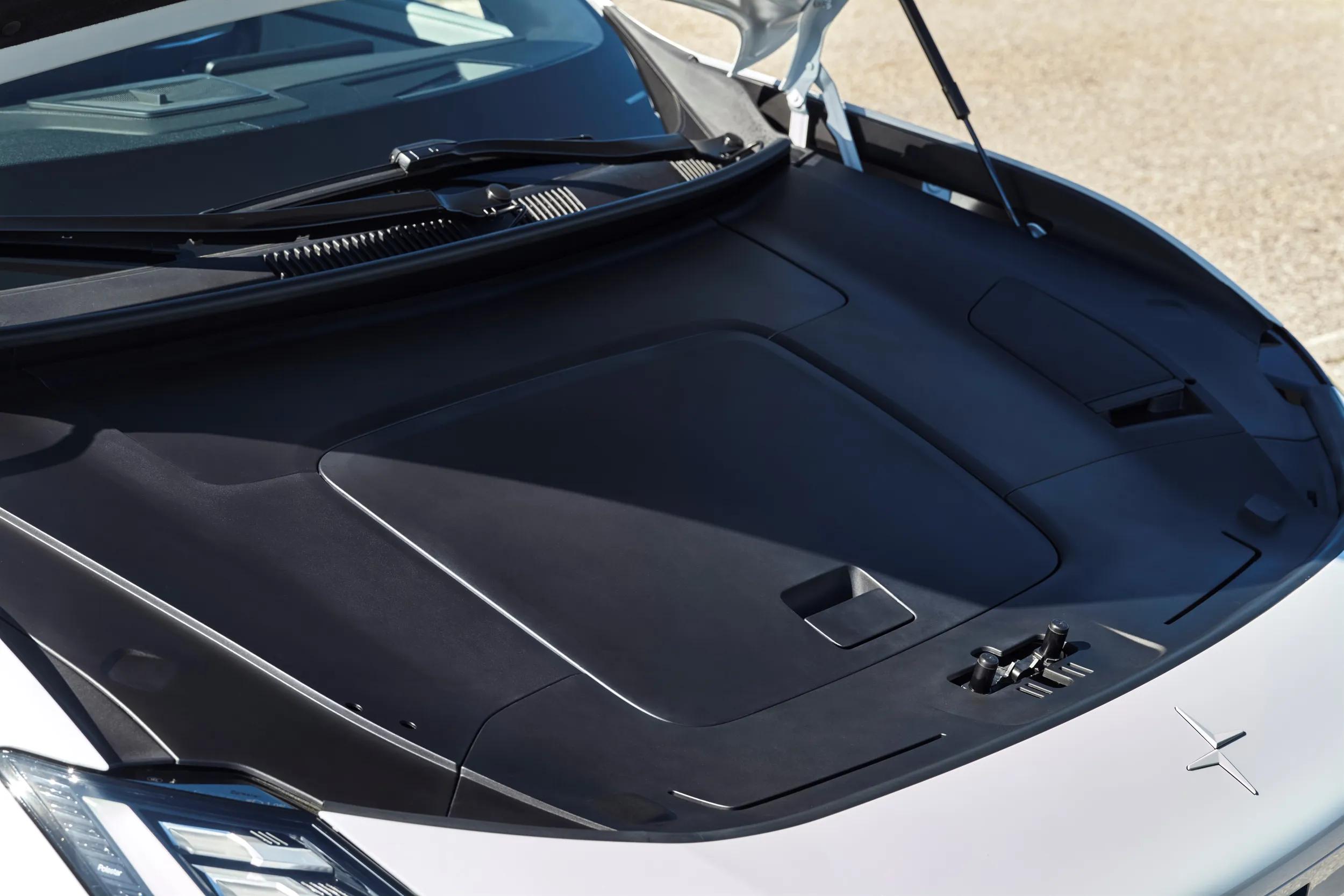 Het is even zoeken hoe je de kofferklep opent: daarvoor blijkt een knopje verscholen te zitten in de brede strook rond de achterlichten. Overigens kun je de achterklep ook van binnenuit open doen. De kofferbak van de Polestar heeft een inhoud van minimaal 526- en maximaal 1.536 liter.