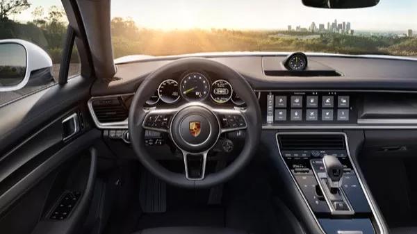 Uiteraard is de nieuwste Panamera e-Hybrid sneller dan zijn voorganger. Met een gecombineerd vermogen van 462 pk heeft hij 46 pk meer te bieden dan het model dat hij vervangt. Die vermogenswinst valt voornamelijk toe te schrijven aan de elektromotor; de zescilinder benzinemotor met wie de ‘groene' krachtbron het klusje moet klaren, is er qua prestaties niet noemenswaardig op vooruit gegaan. De twee motoren werken alleen samen wanneer je het gaspedaal vloert; bij rustig toeren is het de V6 die het meeste werk verzet. Om je brandstofverbruik te drukken, zal je eerst het batterijpakket leeg moeten rijden. Een gemiste kans als je het ons vraagt, zoals we het ook zonde vinden dat je nauwelijks remenergie kunt terugwinnen. De Porsche rolt hoofdzakelijk uit; de wagen regenereert alleen wanneer je de remmen gebruikt. De manier waarop verdient geen schoonheidsprijs: eerst schakelt de Panamera terug, dan remt hij op de elektromotor en tot slot gebruikt de sedan zijn mechanische remmen. Het geheel voelt aan alsof je pompend aan het remmen bent. Het is bovendien de enige steek die de verder voortreffelijke achttraps automaat laat vallen; in alle andere gevallen doet de transmissie ongemerkt zijn werk. Wat ons betreft is het grootste pluspunt van de verbeterde aandrijflijn niet de extra versnelling, maar de toegenomen rust aan boord. De vorige e-Hybrid klonk bij tijd en wijlen alsof je een ritje met de tram maakte. Deze versie is een stuk stiller. De Panamara is zelfs zo’n aangename reisauto, dat het Porsche-DNA hem bijna in de weg zit. Het van luchtvering voorziene onderstel is erg communicatief; je voelt iedere oneffenheid in de weg als een kiezelsteen in je (sport)schoenen. Daar zit je niet op te wachten wanneer je gedachteloos van A naar B aan het zweven bent. Aan de andere kant sturen er maar weinig 5 meter lange luxe wagens zó scherp als deze Panamera. Voor zo’n grote auto biedt hij een echte sportwagenzit; laag, met het dashboard als een cockpit om je heen gebouwd. Vanwege de kleine raampjes en forse raamstijlen is het zicht rondom alleen niet om over naar huis te schrijven. Gelukkig staat er een achteruitrijcamera op de optielijst. Daar vinden we ook de aanvullende veiligheidsuitrusting, want behalve ABS, ESP en een speciale motorkap die voetgangers en fietsers bij een eventuele botsing moet beschermen, dien je voor zaken als adaptieve cruise control, een noodremsysteem, actieve rijstrookassistentie en dode hoek signalering (stevig) bij te betalen.De Porsche Panamera e-Hybrid van binnen